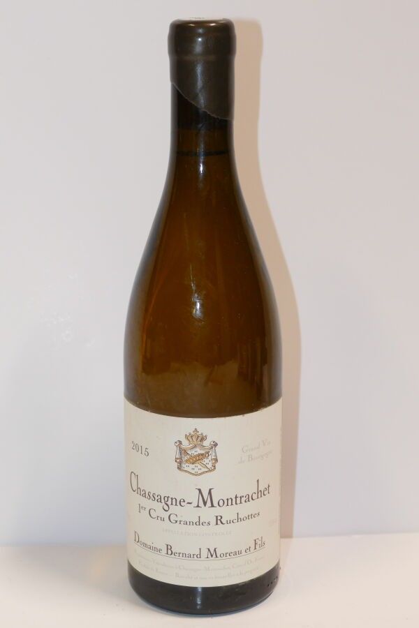 1 Btle Chassagne Montrachet 1er Cru Grandes Ruchottes 2015 Domaine Bernard Moreau label very slightly dirty IC 10/10 PM Expert: Emilie Gorreteau