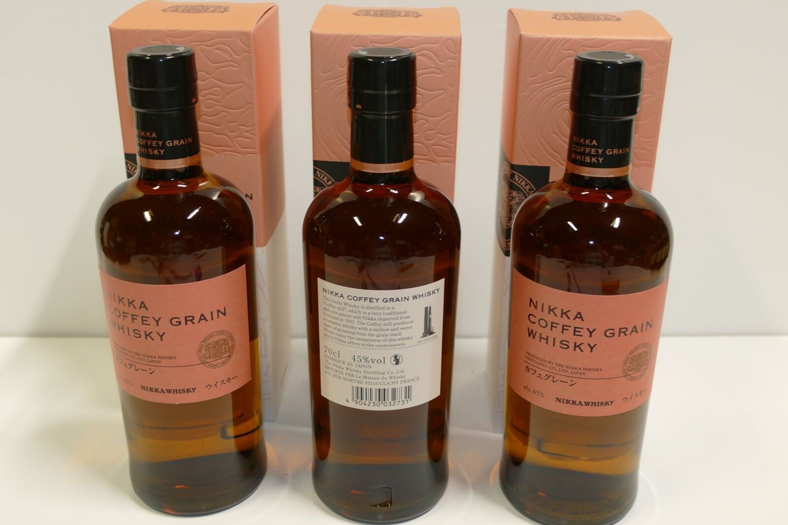 3 Btles Whisky Nikka Coffey Grain Single Grain in cases Vat included and recoverable for taxable persons Expert: Emilie Gorreteau