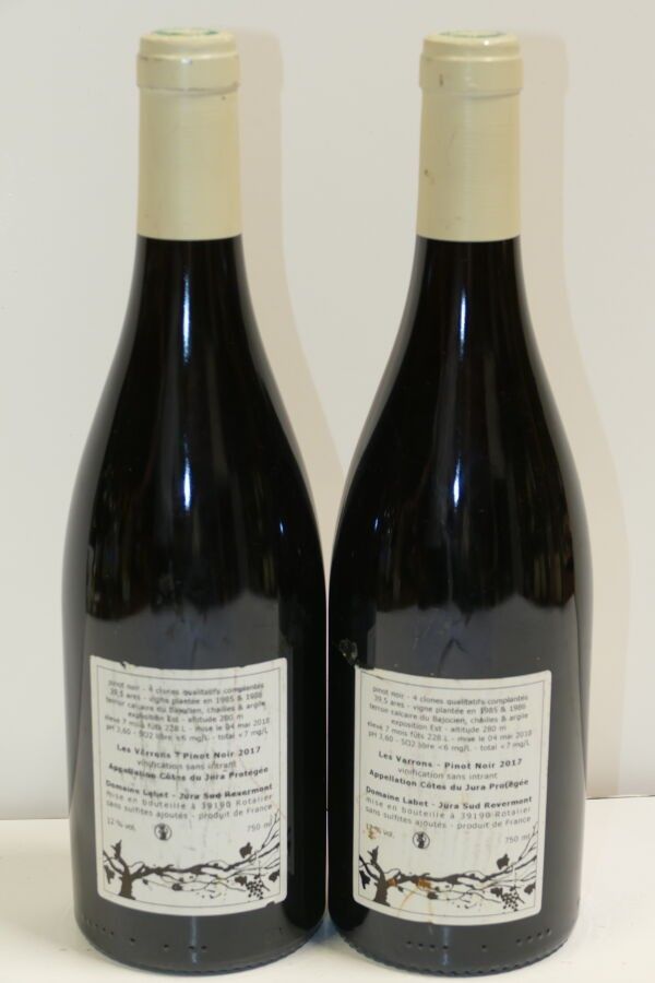 2 Btles Côtes du Jura Les Varrons Pinot Noir 2017 Domaine Labet labels and back labels slightly dirty and very slightly damaged Expert: Emilie Gorreteau