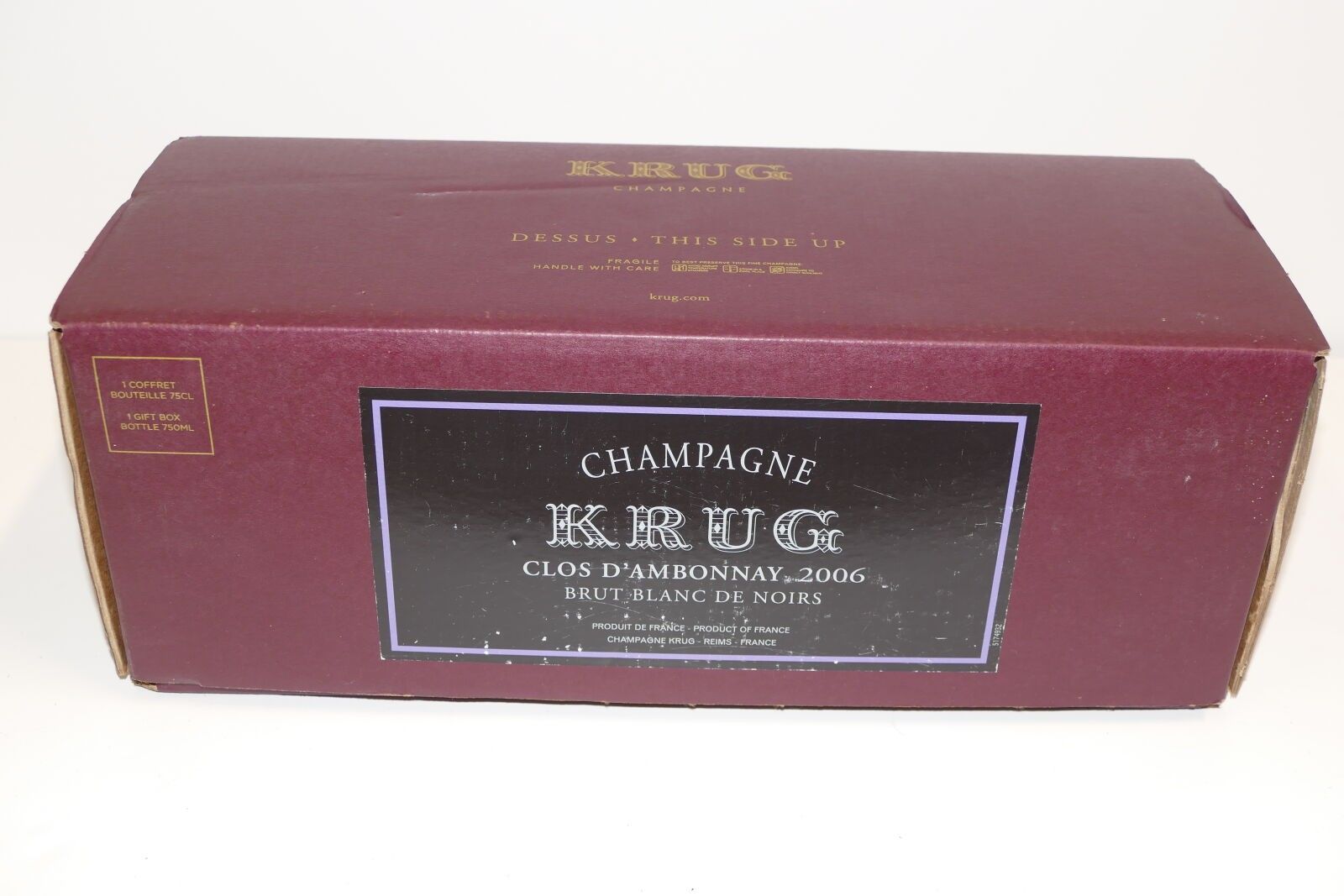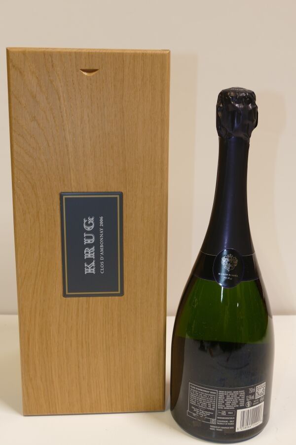 1 Btle Champagne Krug Clos d'Ambonnay 2006 in luxury wooden box and damaged original cardboard packaging ⦿ Expert : Emilie Gorreteau