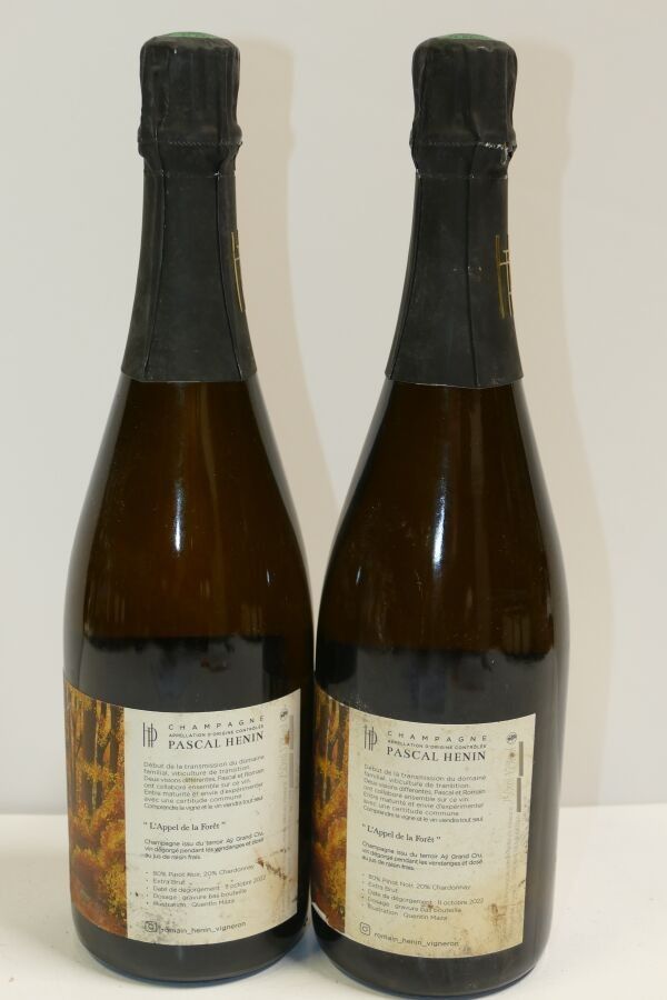 2 Btles Champagne Pascal Hénin L'Appel de la Forêt 2015 disgorged on 11 October 2022 labels dirty and very slightly damaged Expert : Emilie Gorreteau
