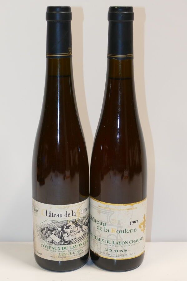 2 Btles Coteaux du Layon Chaume 1997 50 cl : 1 Btle Château de La Guimonière Les Julines and 1 Btle Château de La Roulerie Les Aunis dirty labels IC 10/10 PM Expert : Emilie Gorreteau