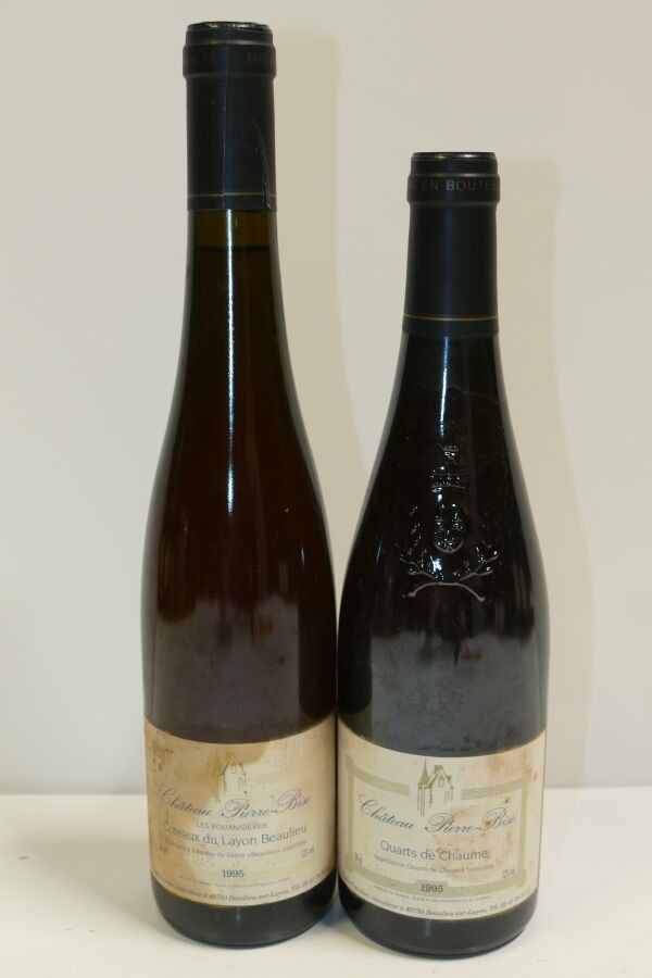 2 Btles Domaine Pierre Bise 1995 50 cl : 1 Btle Coteaux du Layon Beaulieu Les Rouanières and 1 Btle Quarts de Chaume slightly dirty labels IC 10/10 PM Expert : Emilie Gorreteau
