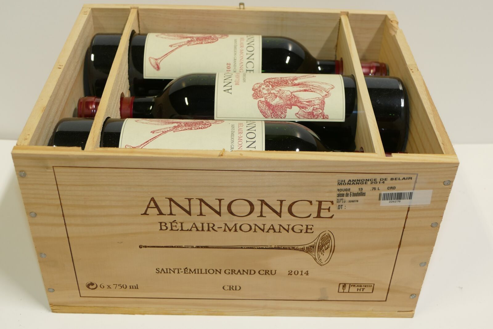 6 Btles Annonce de Belair Monange 2014 Saint Emilion en caisse bois d'origine VAT included and recoverable for taxable persons Expert: Emilie Gorreteau