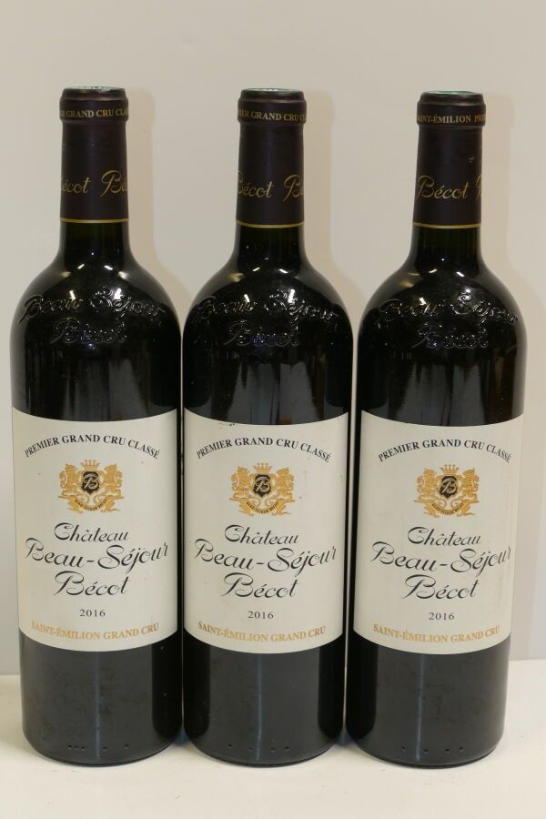 3 Btles Château Beau-Séjour Bécot 2016 1er GCCB Saint Emilion labels very slightly dirty Expert: Emilie Gorreteau