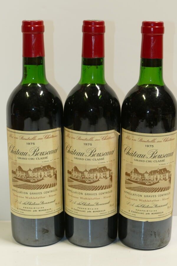 3 Btles Château Bouscaut rouge 1975 CC Graves low levels sli…