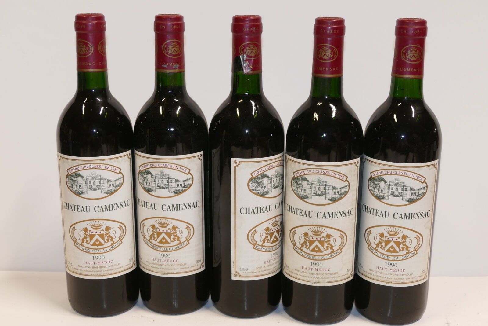 5 Btles Château Camensac 1990 5th GCC Haut Médoc including one capsule damaged on the bottom of the skirt slightly dirty labels Expert : Emilie Gorreteau