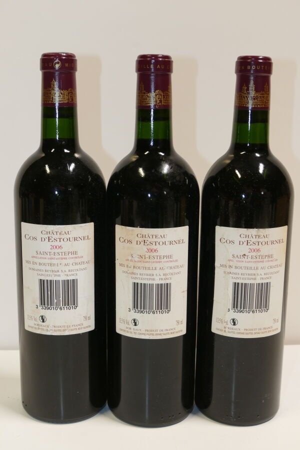 3 Btles Château Cos d'Estournel 2006 2nd GCC Saint Estèphe labels and back labels very slightly dirty and very slightly damaged Expert : Emilie Gorreteau