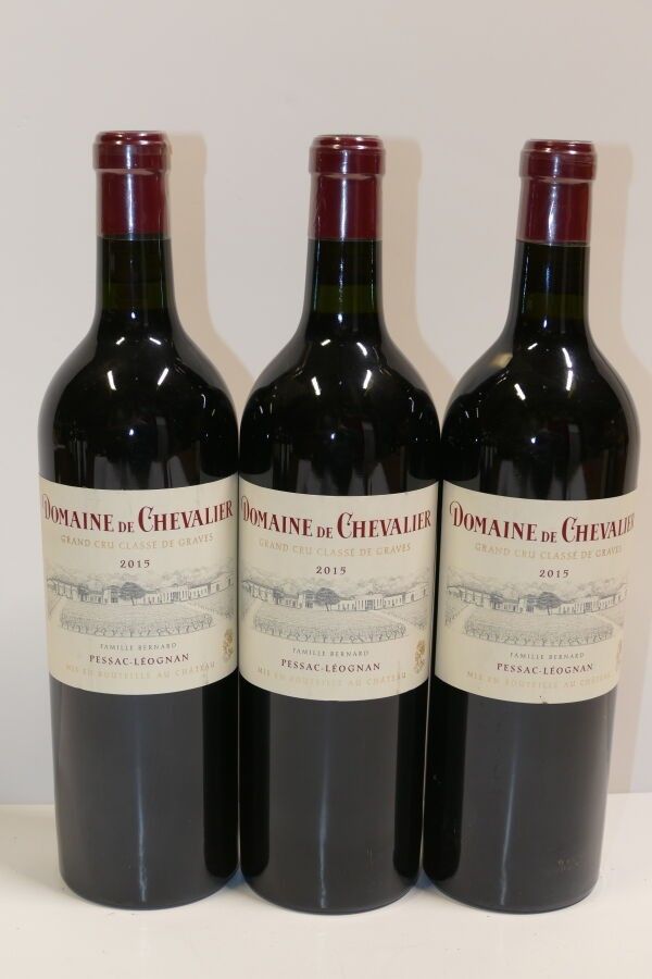 3 Btles Château Domaine de Chevalier 2015 CC Graves very sli…