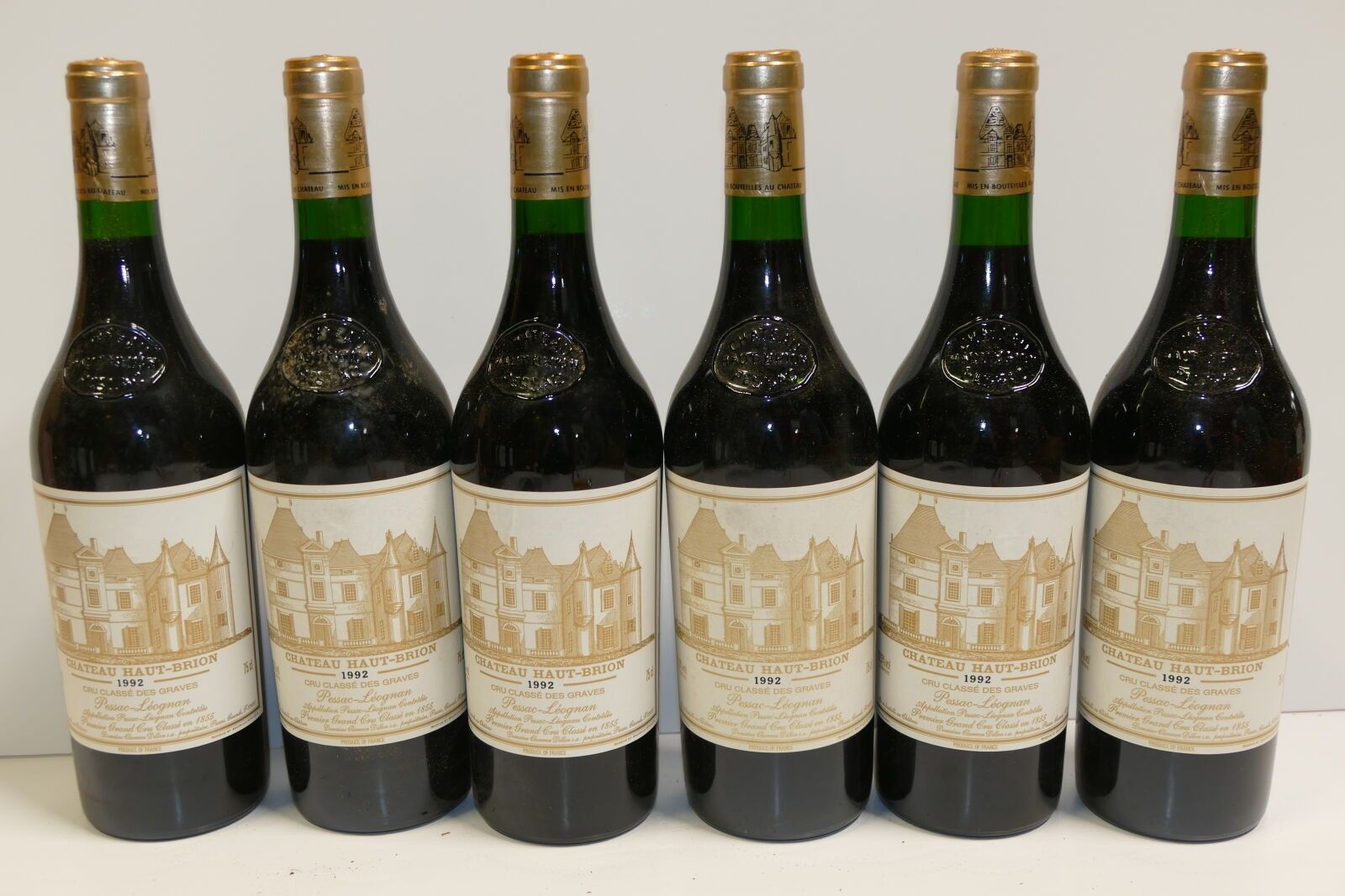 12 Btles Château Haut Brion 1992 1er GCC Graves including two badly stuck original labels four very slightly dirty in original wooden case Expert : Emilie Gorreteau