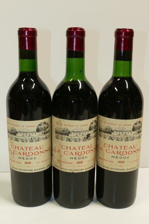 3 Btles Château La Cardonne 1959 Cru Bourgeois Médoc includi…