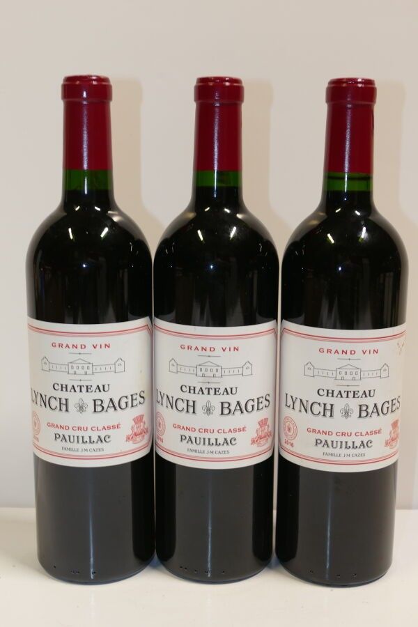 3 Btles Château Lynch Bages 2016 5th GCC Pauillac labels ver…