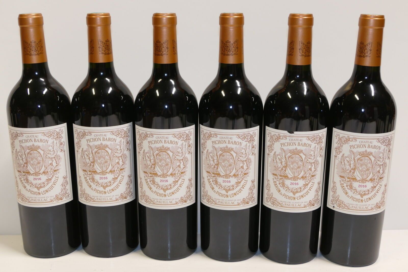 6 Btles Château Pichon Baron 2016 2nd GCC Pauillac including a very slightly damaged label Expert: Emilie Gorreteau