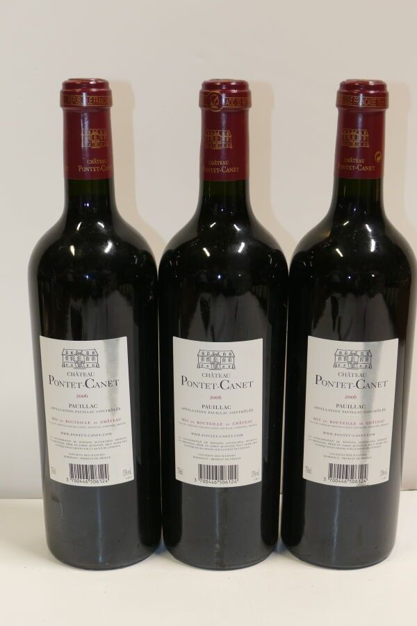 3 Btles Château Pontet Canet 2006 5th GCC Pauillac including one very slightly stained label and two stained back labels Expert : Emilie Gorreteau