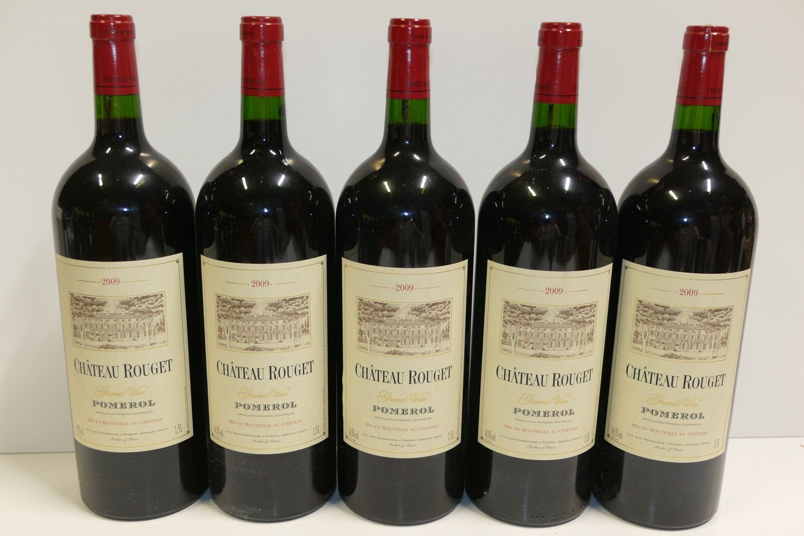 5 Magnums Château Rouget 2009 Pomerol in original wooden cas…