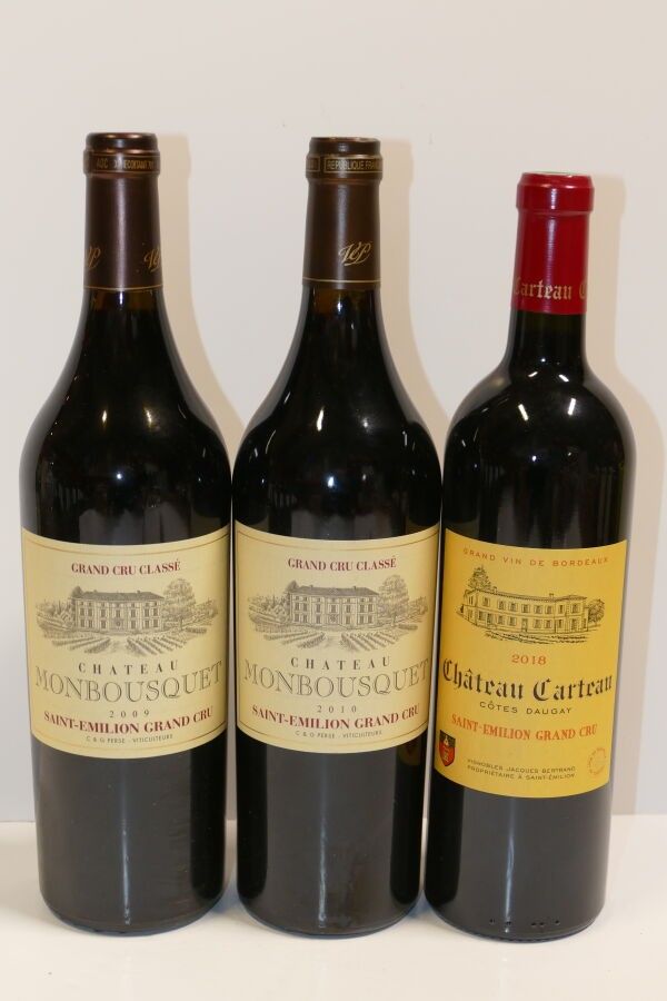 A Batch of 3 Btles: 2 Btles Château Monbousquet (1 Btle of 2009 and 1 Btle of 2010) GCC Saint Emilion, and 1 Btle Château Carteau 2018 GC Saint Emilion Expert: Emilie Gorreteau