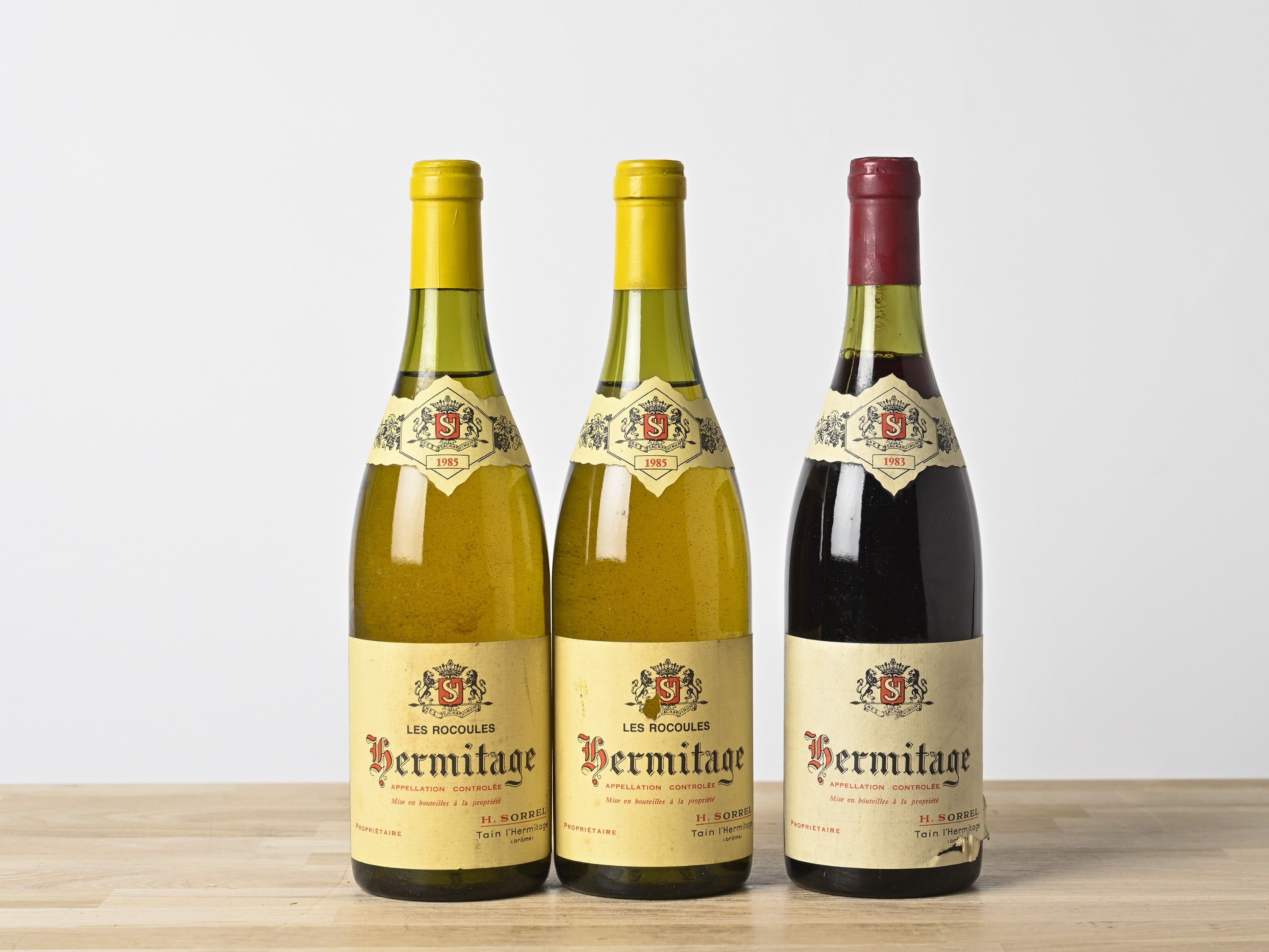 1 B HERMITAGE Red - 1983 - Domaine Henri Sorrel 2 B HERMITAGE White (1 to 3; 1 to 3,5 cm; e.l.s.) - 1985 - Domaine Henri Sorrel