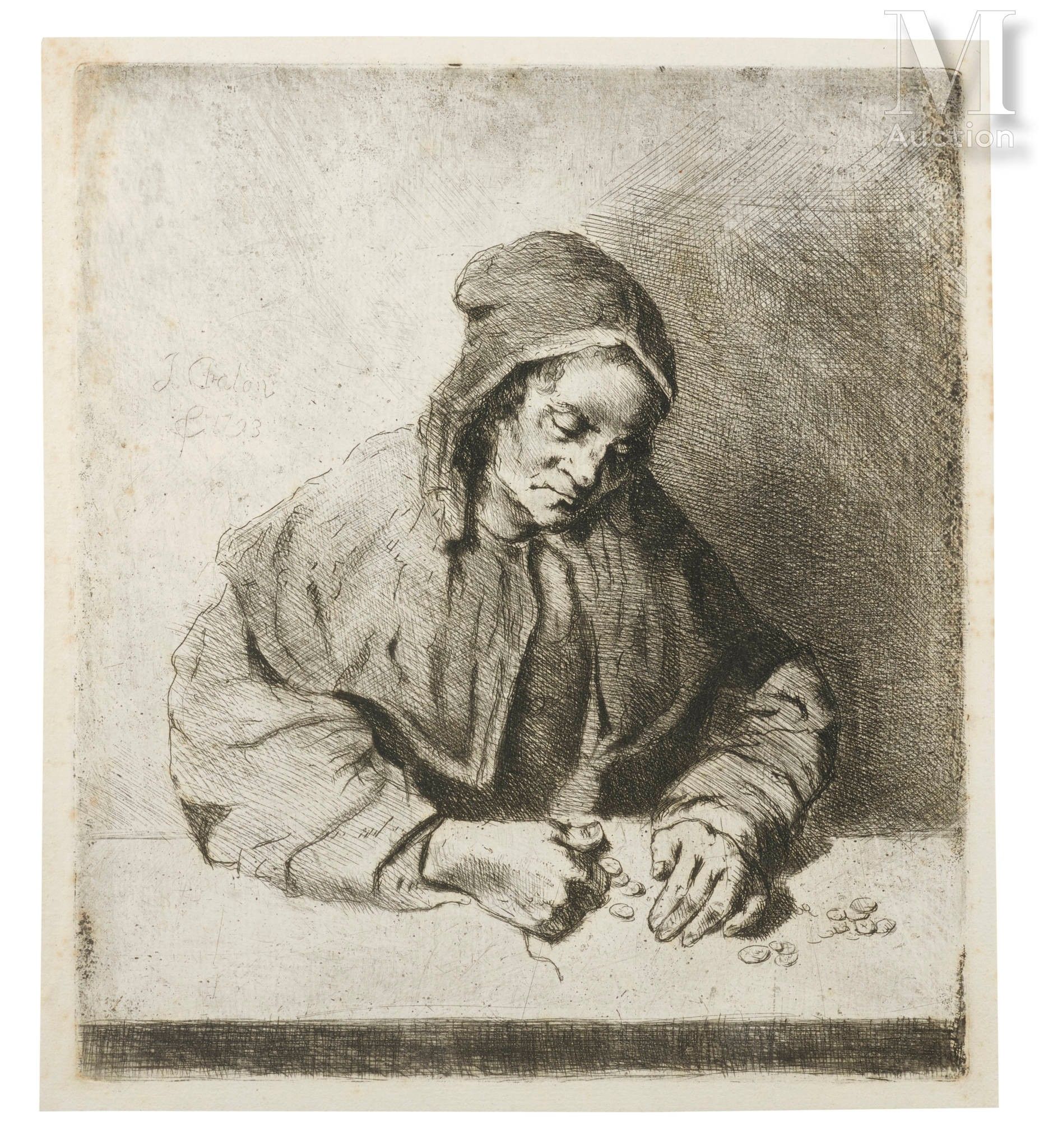 Two portraits of old women inspired by Rembrandt and a wounded man, after Ribera (?). 19.5 x 15cm. 11.7 x 9.7cm. 15 x 11.5cm