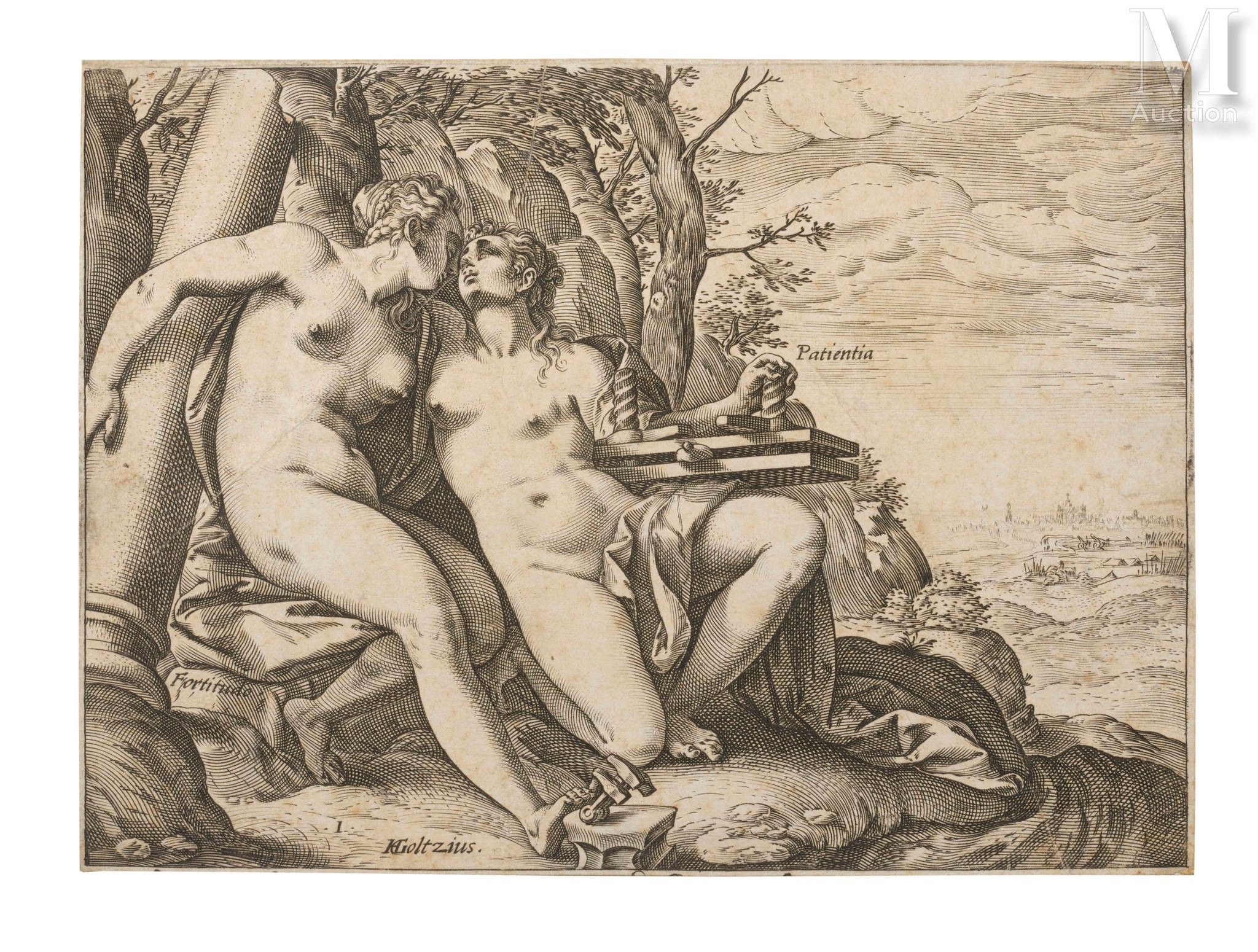 - Fortitudo et patientia, cut on the subject without the text underneath, glued, long fold pinched, scratched (Strauss 217, 183)