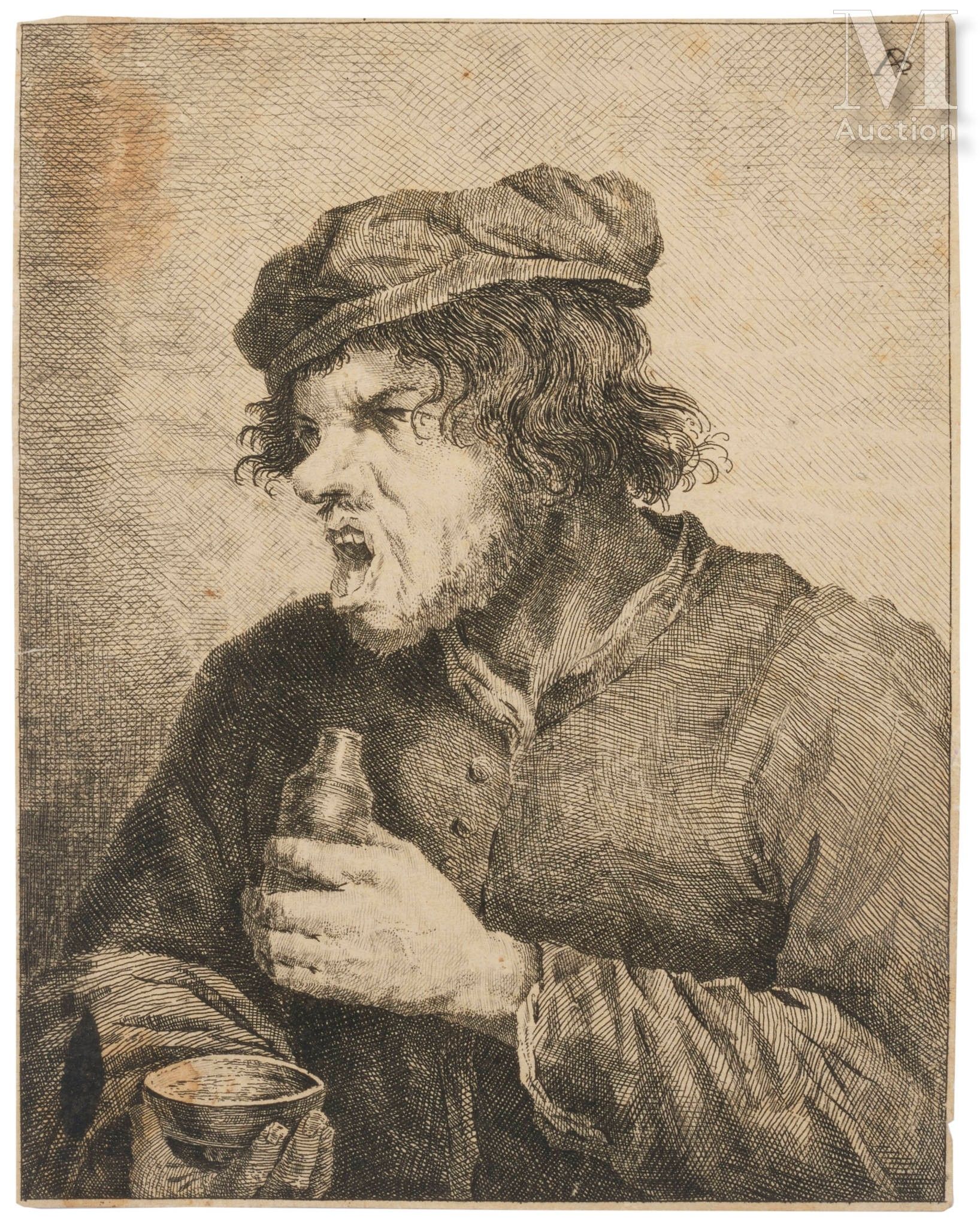 Pieter de Jode (I) after Better Blow Hard Than Burn Your Mouth Burin in counterpart by A. Gabler. Slight stains, no margins 22 x 14.7 cm With : - Two beggars by Peter Nolpe, cut on the subject, thinning, small lacks. 19.2 x 15 cm - The bitter potion, etching after A. Brouwer. 16 x 12.5 cm Set of 3 plates