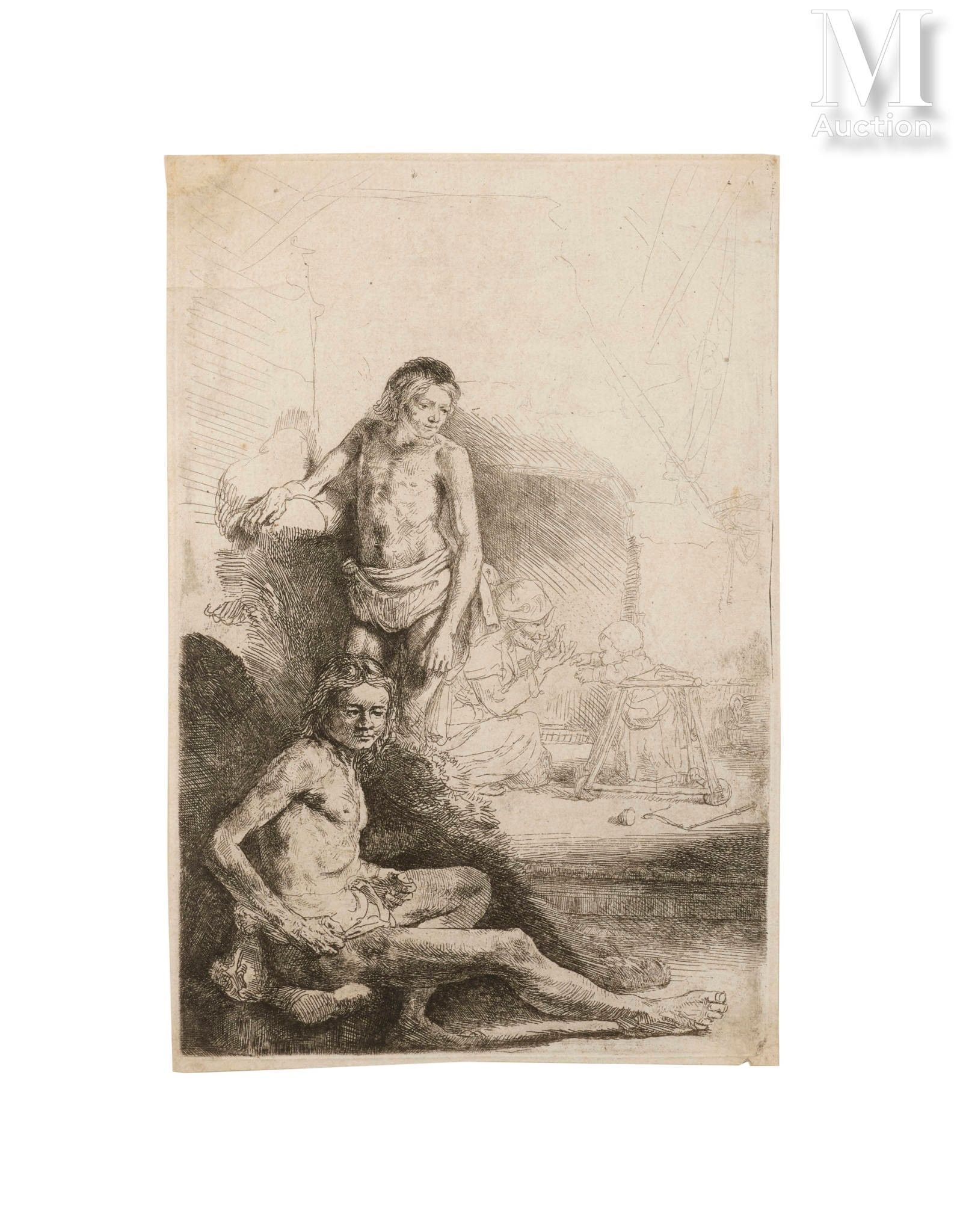 Etching, very fine proof from a slightly late edition, slight thinning, slight lacks, restorations and redone parts in the corners of the upper edge, tiny pinched fold, small stains (Boon 194, New Hollstein 233 V/VIII)