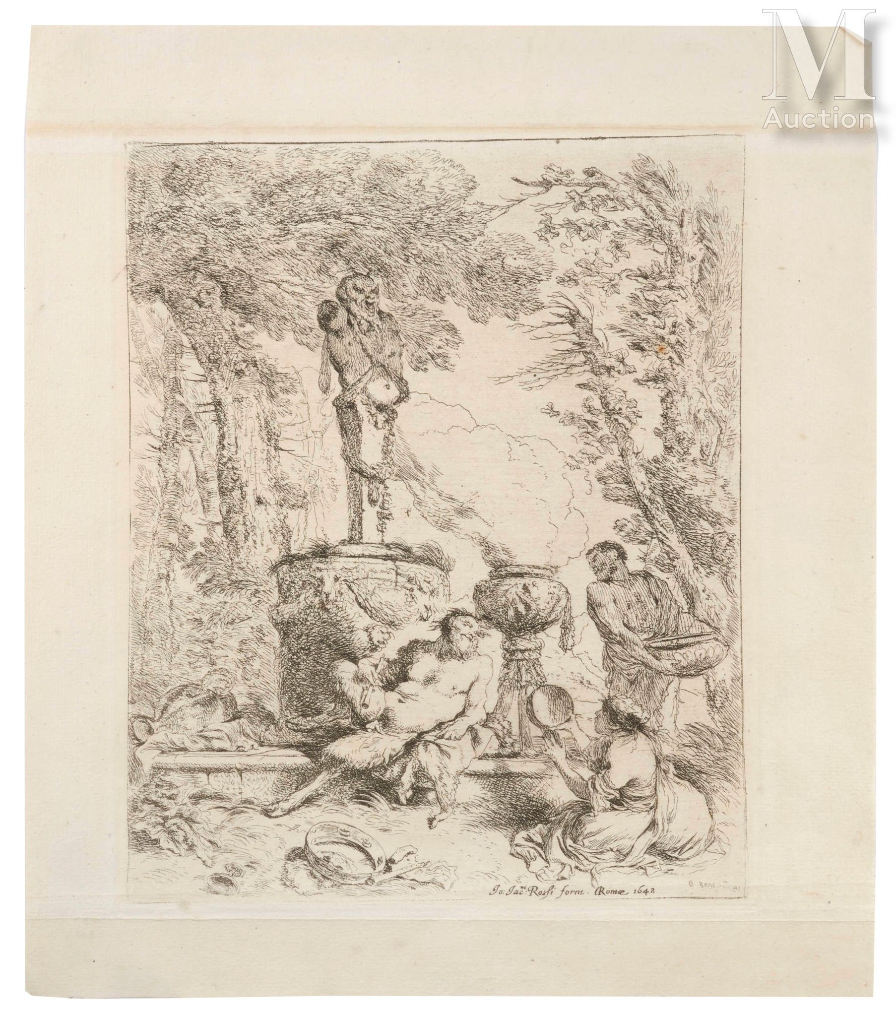 Etching. Nice proof in 18th century print, some folds, small margins. (Bartsch 16) 22,6 x 17,9 cm