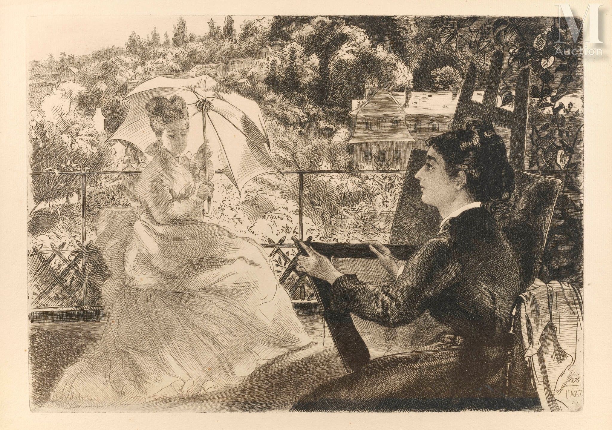 Etching published in l'Art, signature in the plate lower right. Slightly yellowed (Beraldi 215, final state).