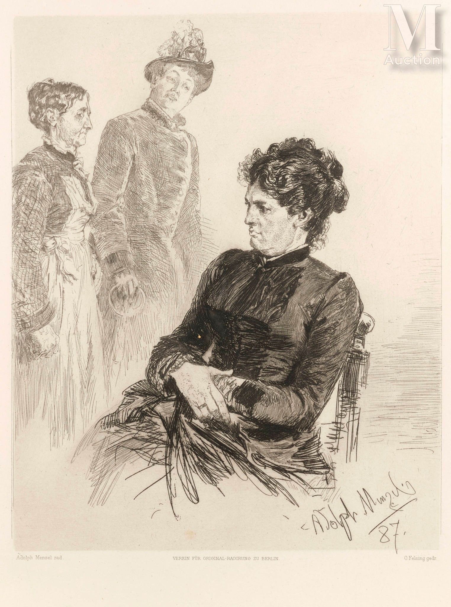 Attached: - Stille Teilnahme by A. Von Menzel, etching on applied chine with printed O. Felsing gedr.