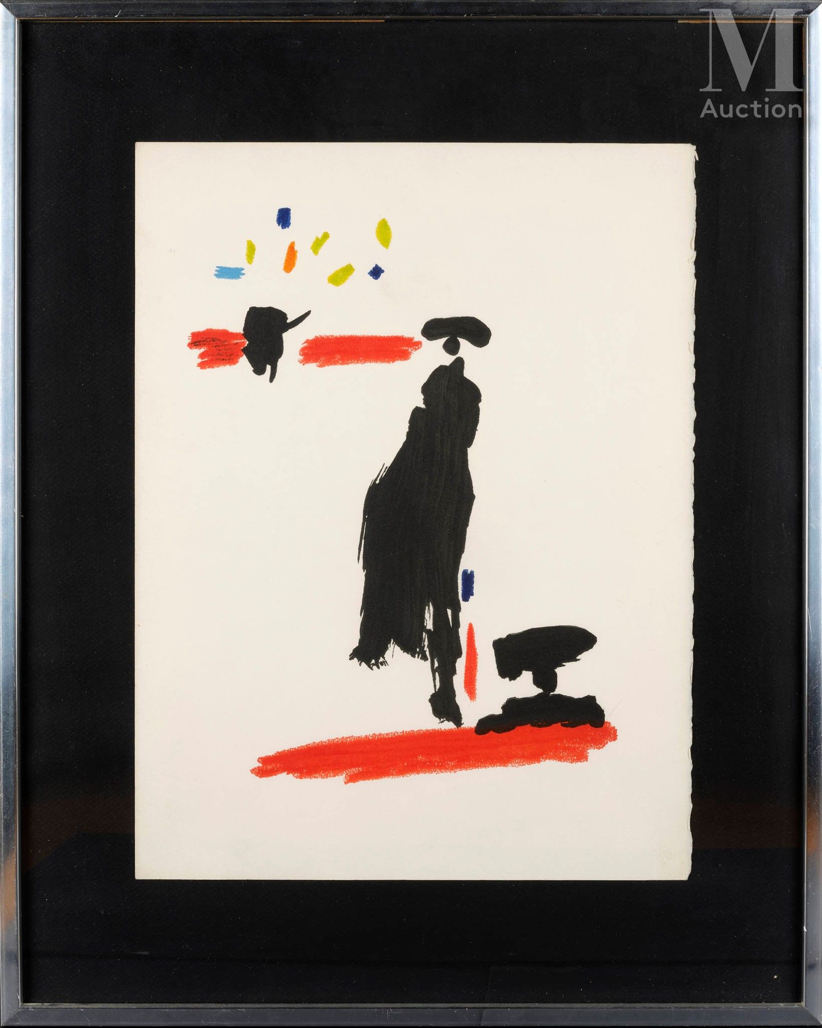 Colour print after a drawing. Framed