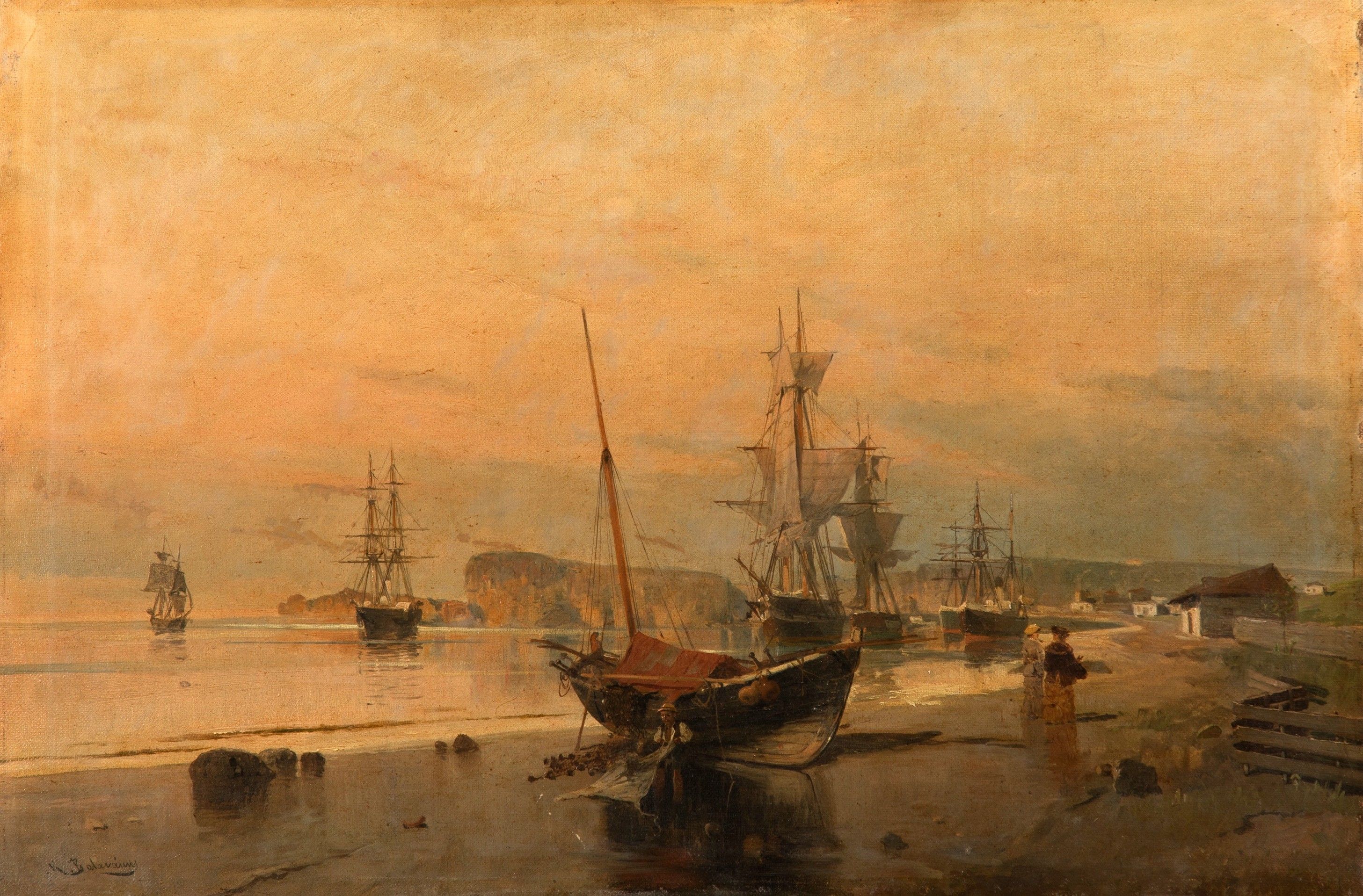 This outstanding Volanakis is a fine rendering of the mellow warmth of atmosphere strongly reminiscent of the great 17th century Dutch masters, whose calm seascapes Volanakis is certain to have seen at Munich's Alte Pinakothek. The artist's decision to give up a solidly established career in Bavaria to return to Greece in 1883, and his choice of taking permanent residency in the seaside town of Piraeus, facilitated him in accurately rendering atmospheric changes, delicate nuances of the seascape and soft gradations of light and shade, capturing the poetry of his scenes.