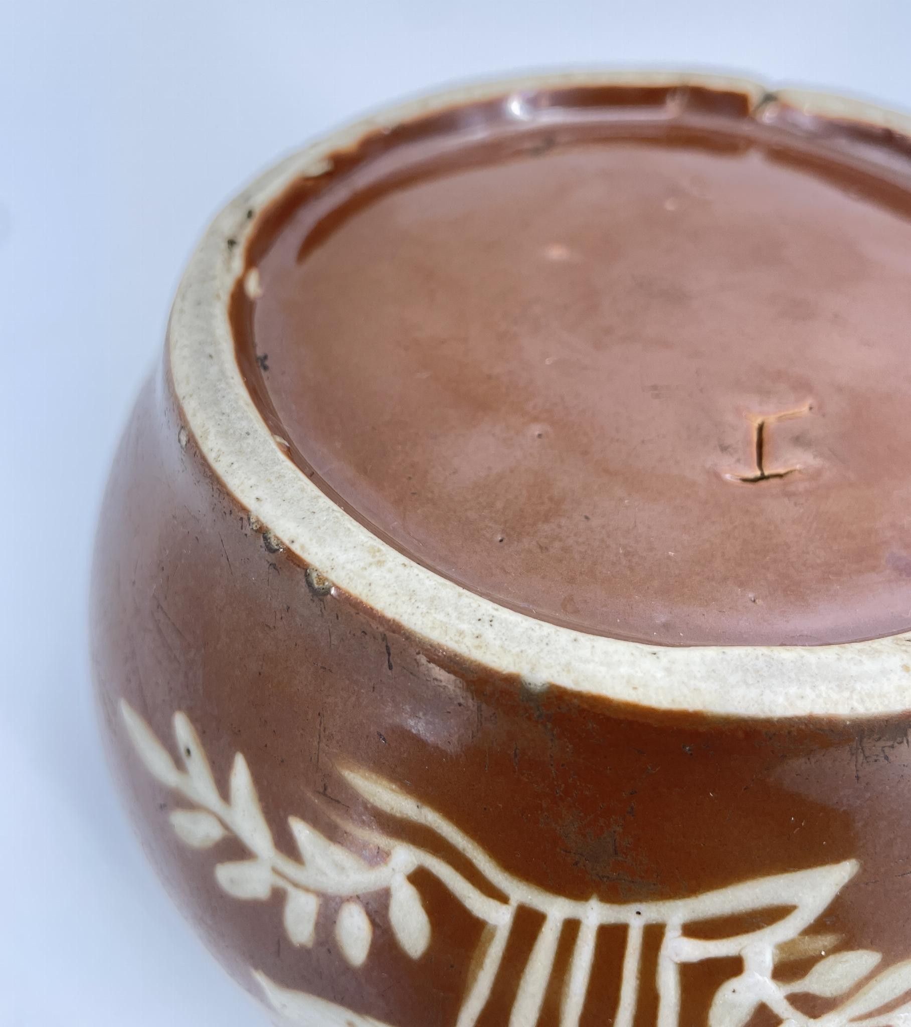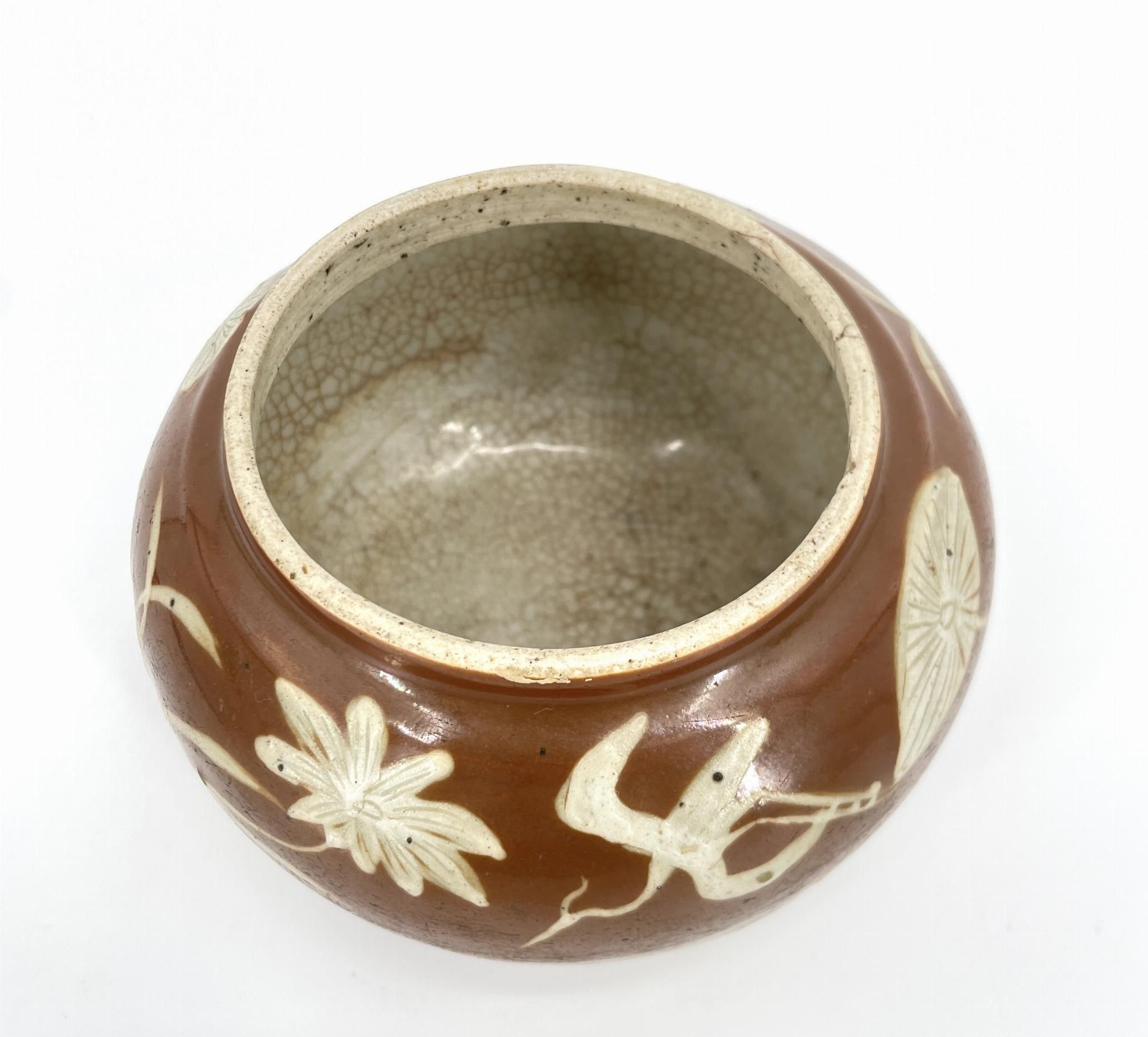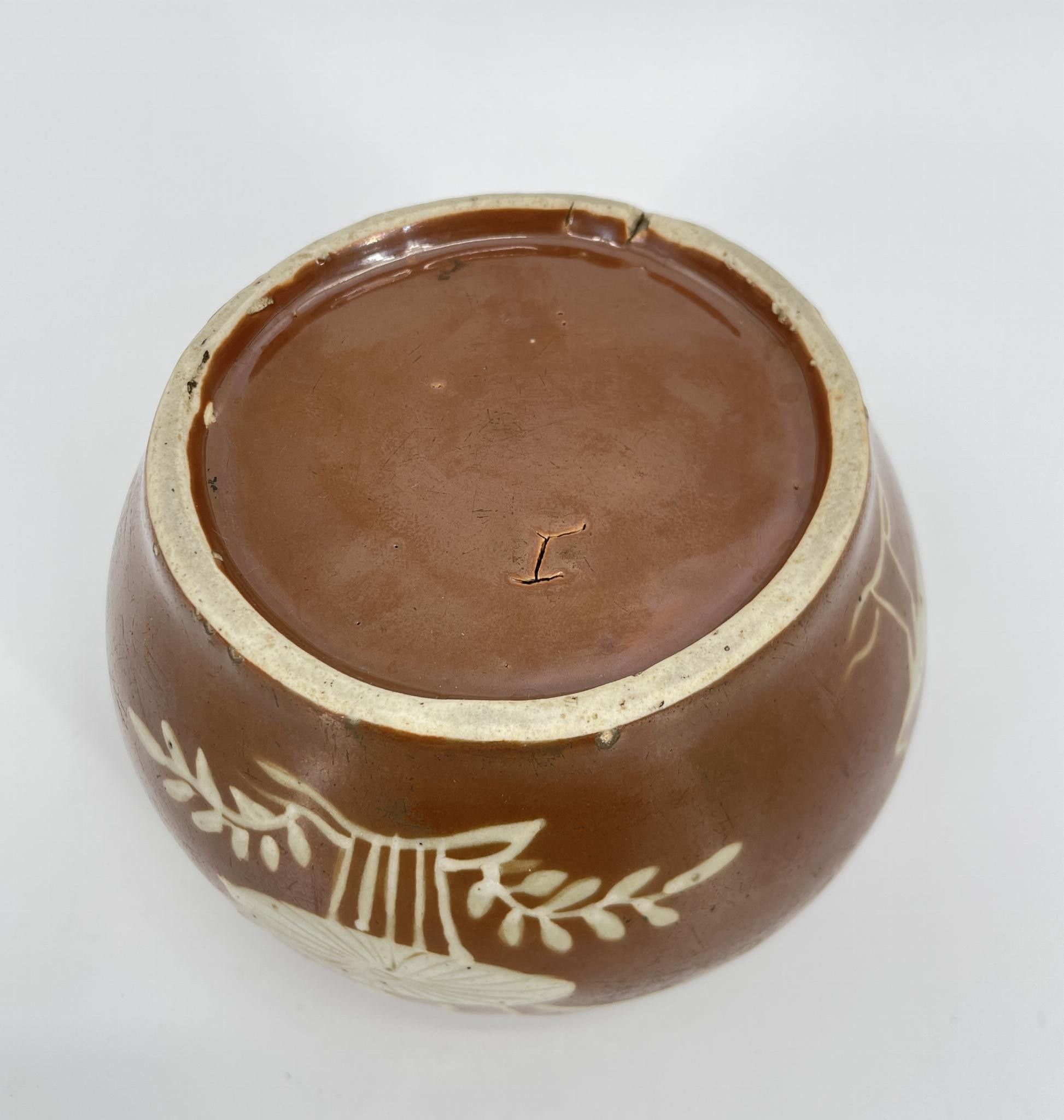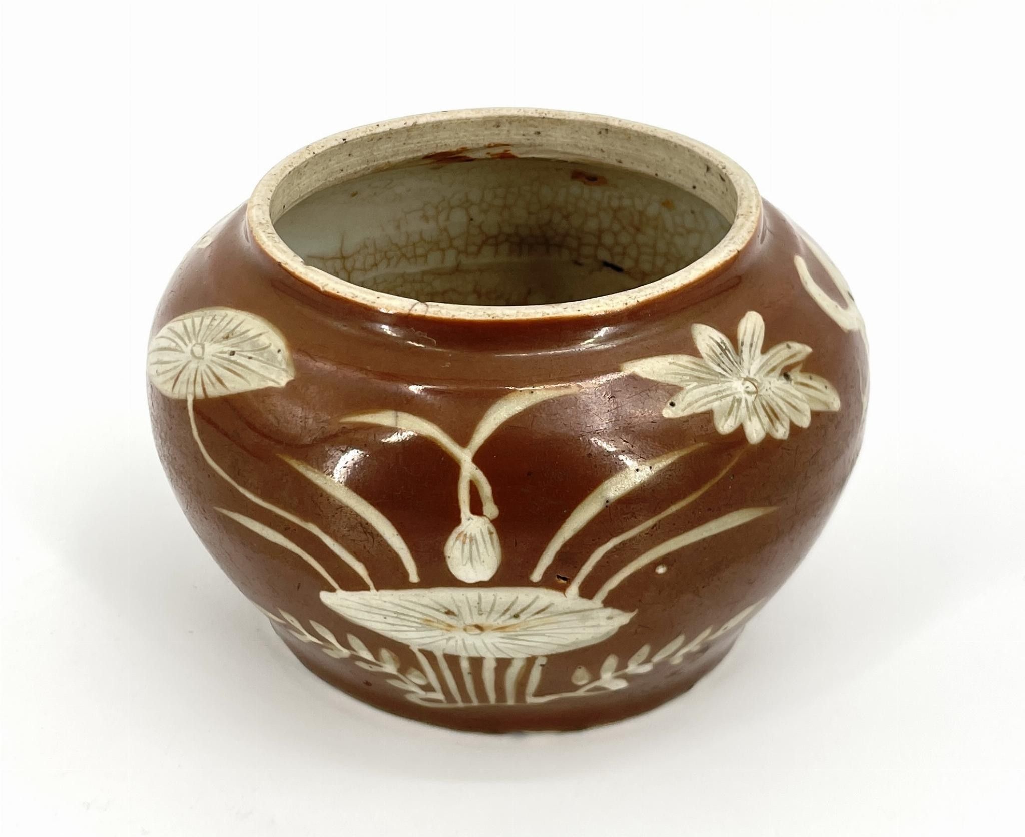 CHINA. Jar with aquatic decoration on a brown background.