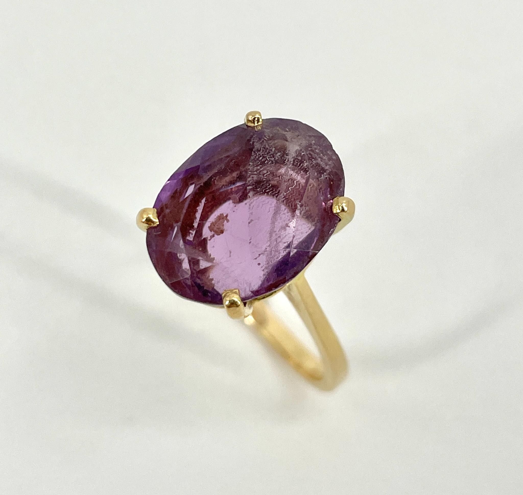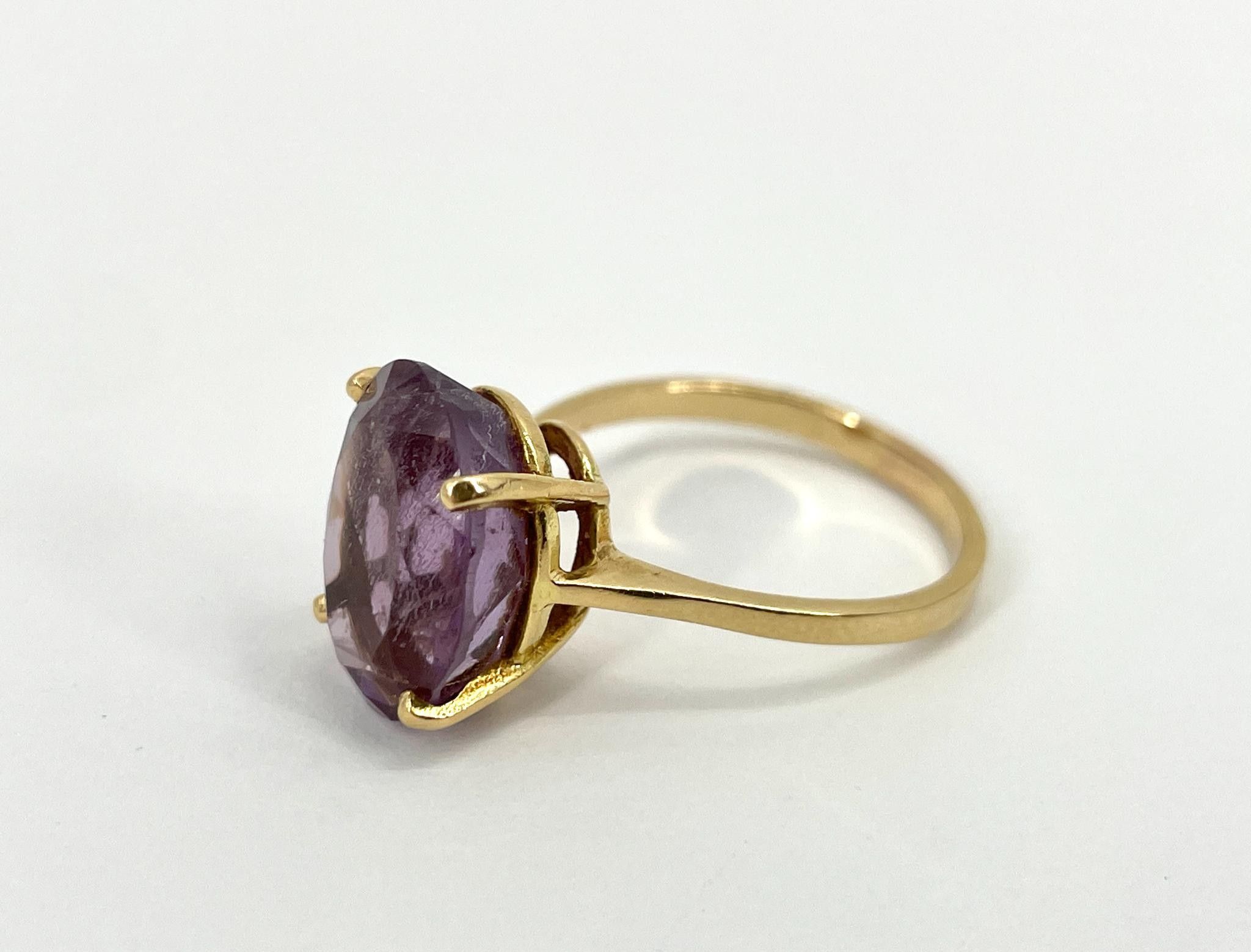 Ring set with a violet stone, yellow gold setting, eagle head hallmark, 750/1000.
