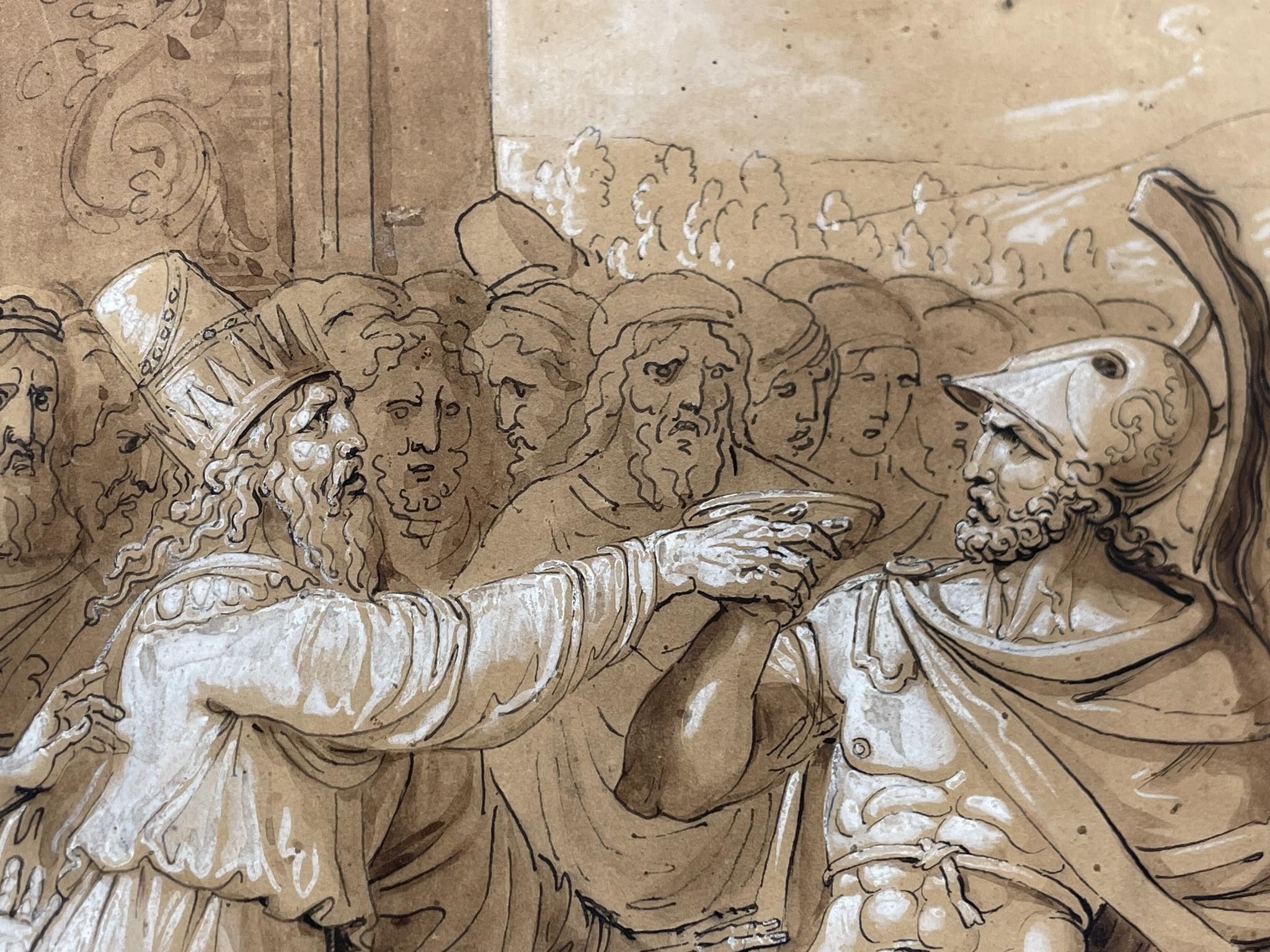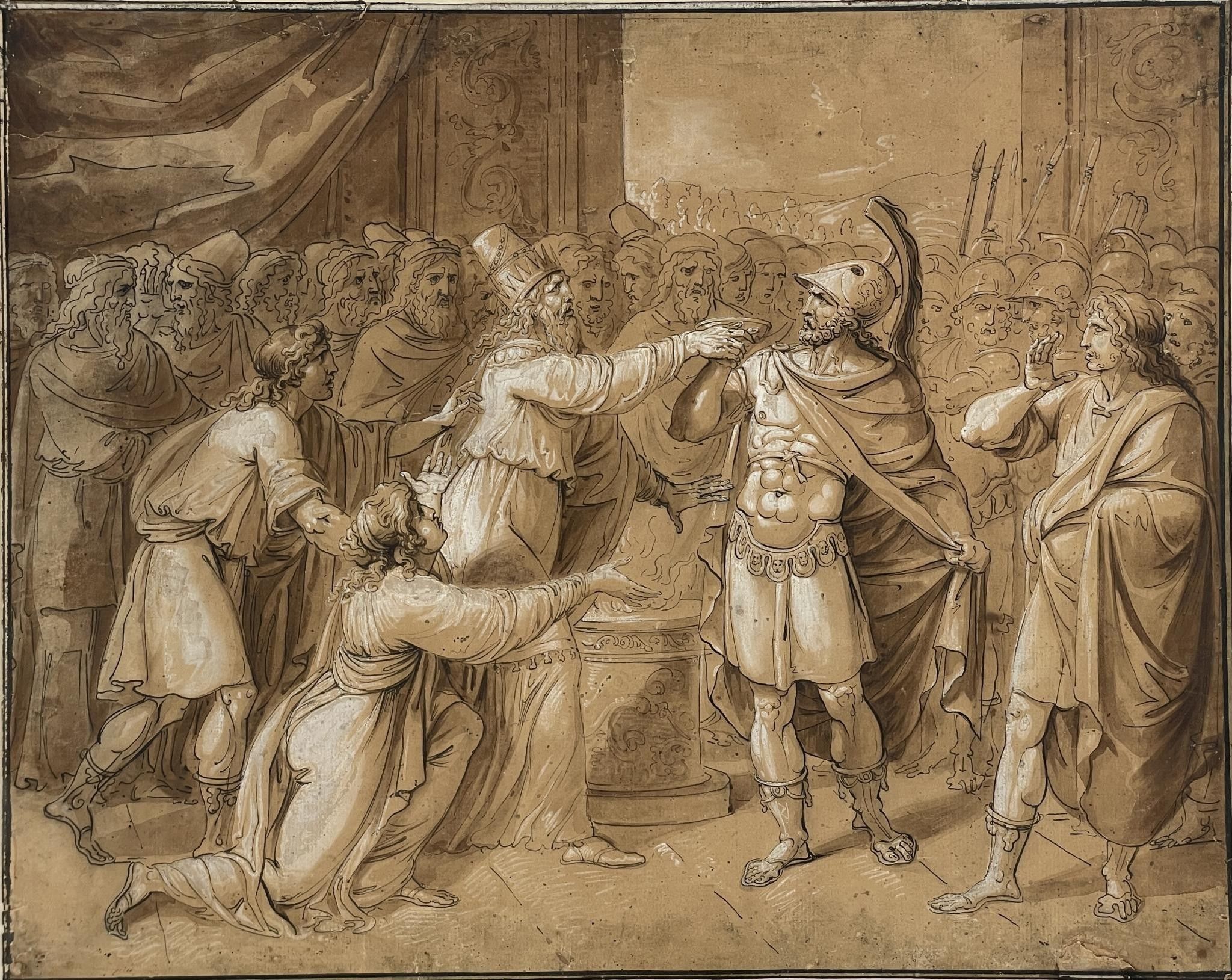 Big tears in the upper part, missing in the lower right corner and at the bottom of the left edge.