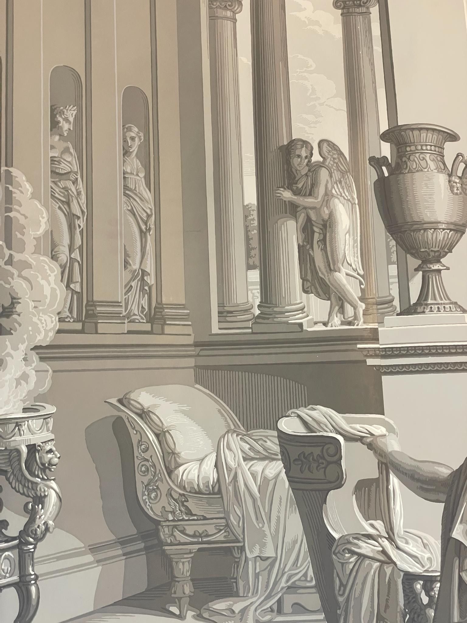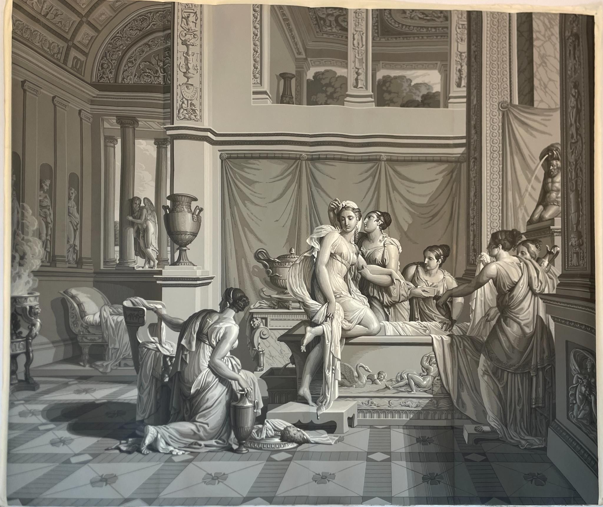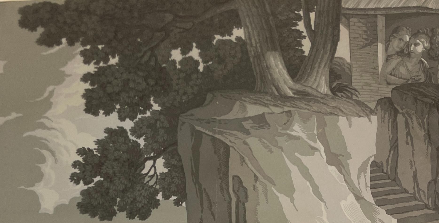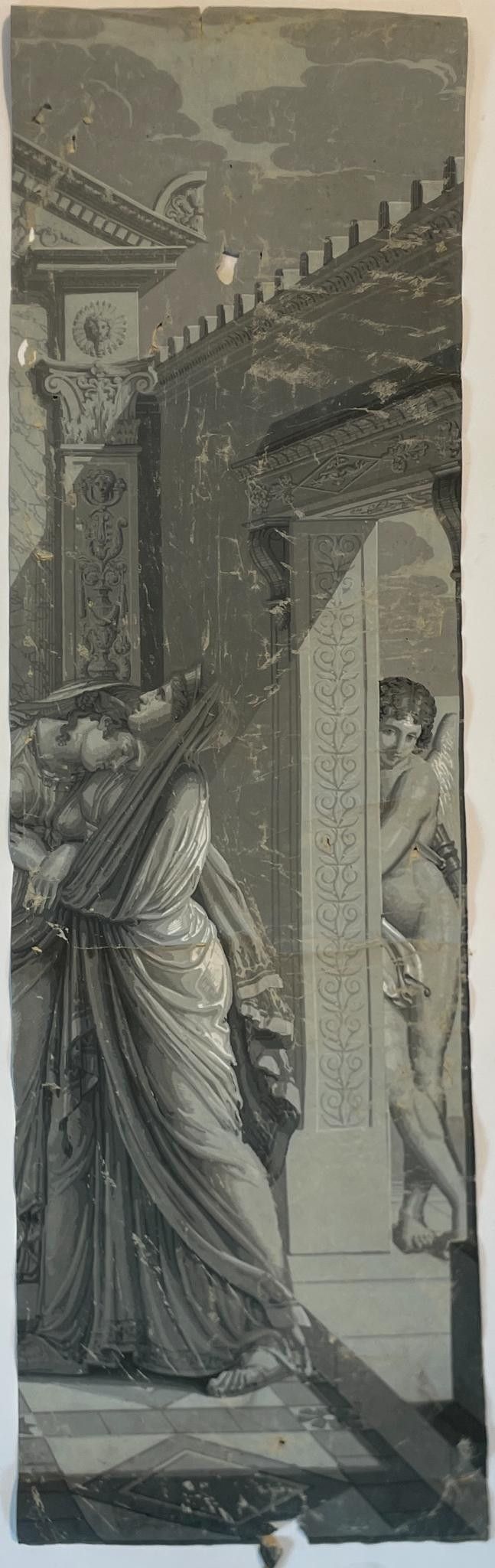 Part of the panoramic wallpaper "L'Histoire de Psyché", 1872, comprising two strips and two sets of cloths showing part of the decoration by Xavier Mader (1789-1830), designer and engraver.