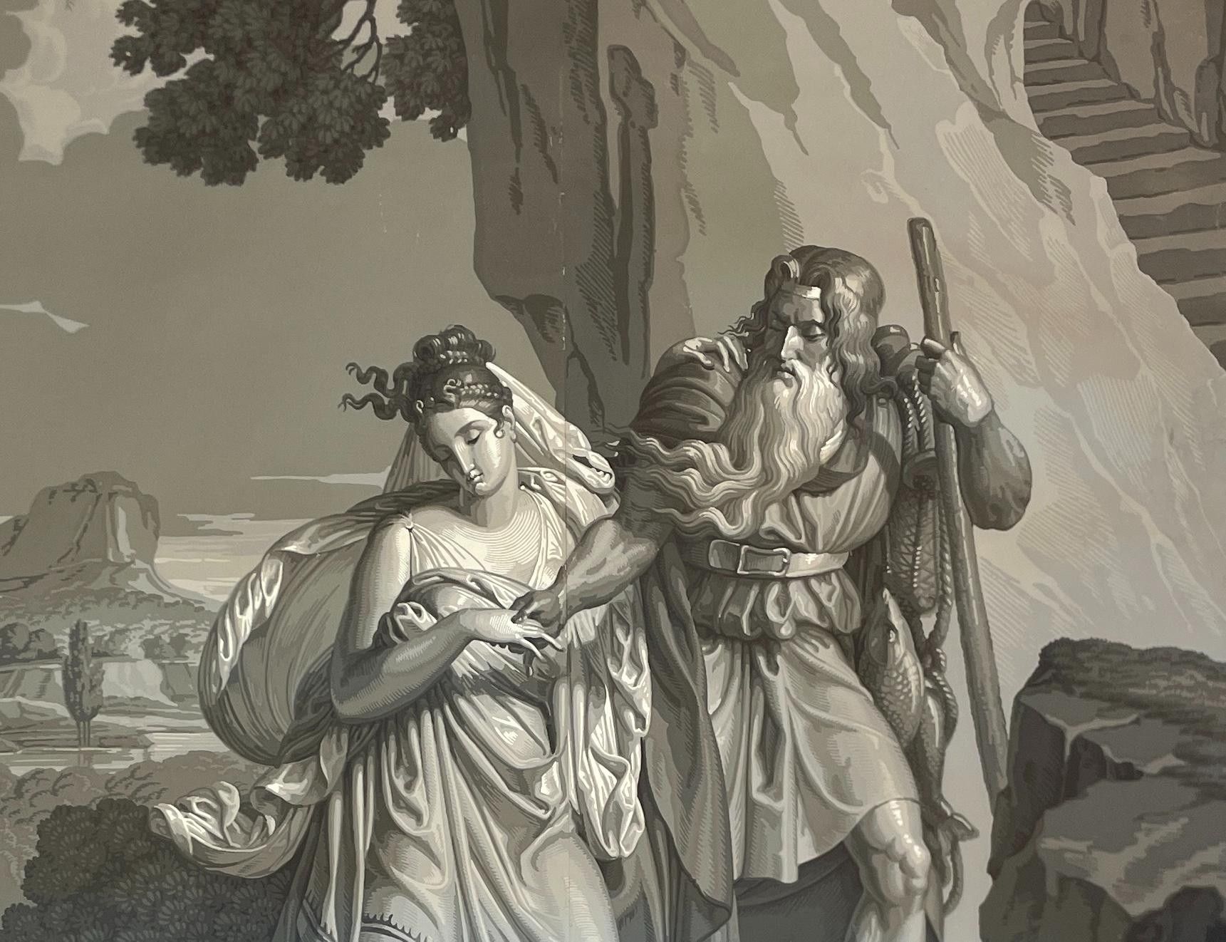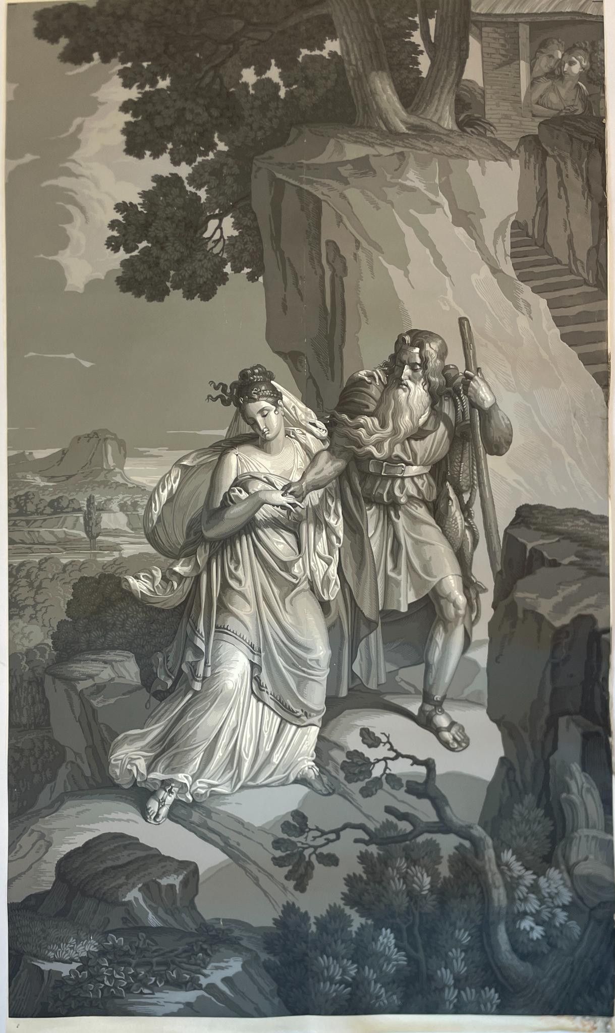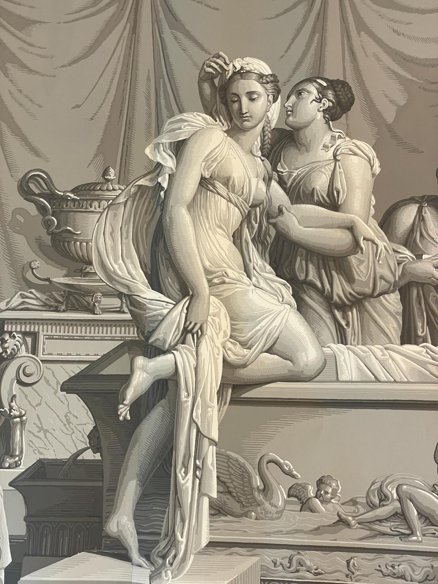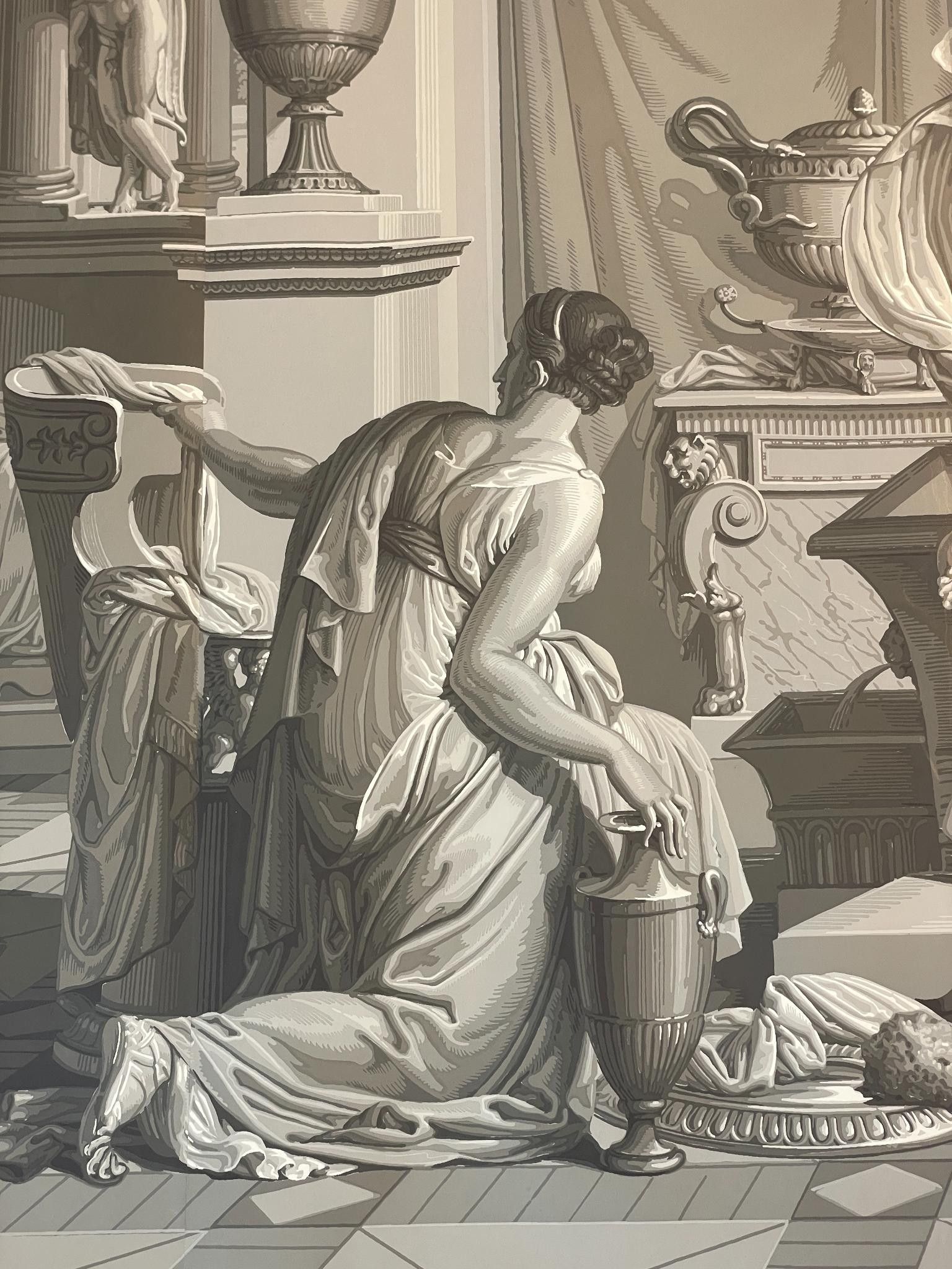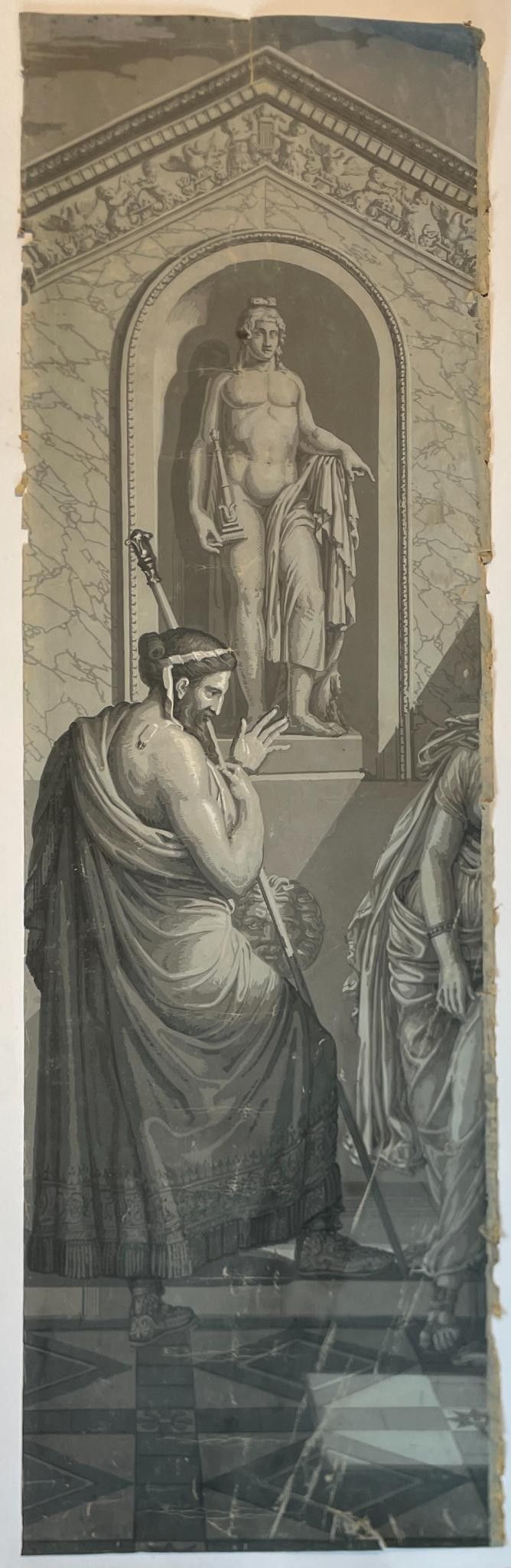Part of the panoramic wallpaper "L'Histoire de Psyché", 1872, comprising two strips and two sets of cloths showing part of the decoration by Xavier Mader (1789-1830), designer and engraver.