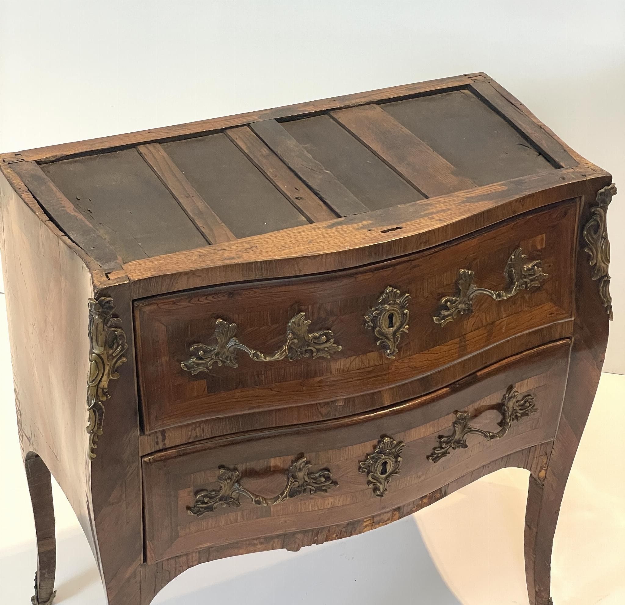 Premium A three-sided inlaid curved commode with two drawers, ormolu…