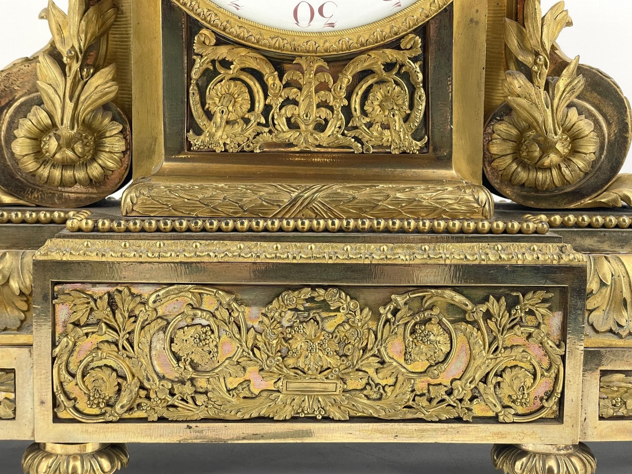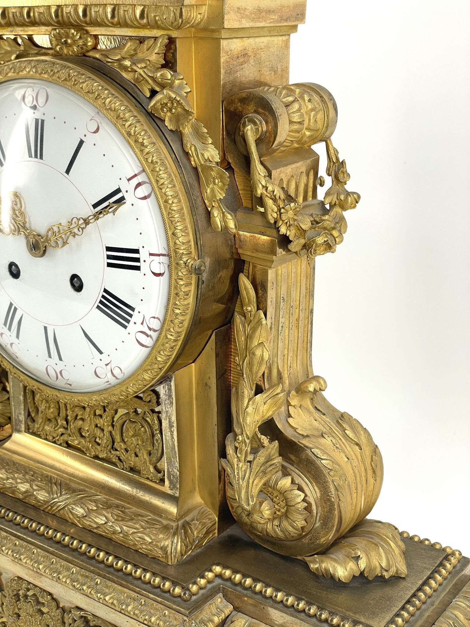 Premium Large gilt bronze clock, white enamelled dial with double ro…