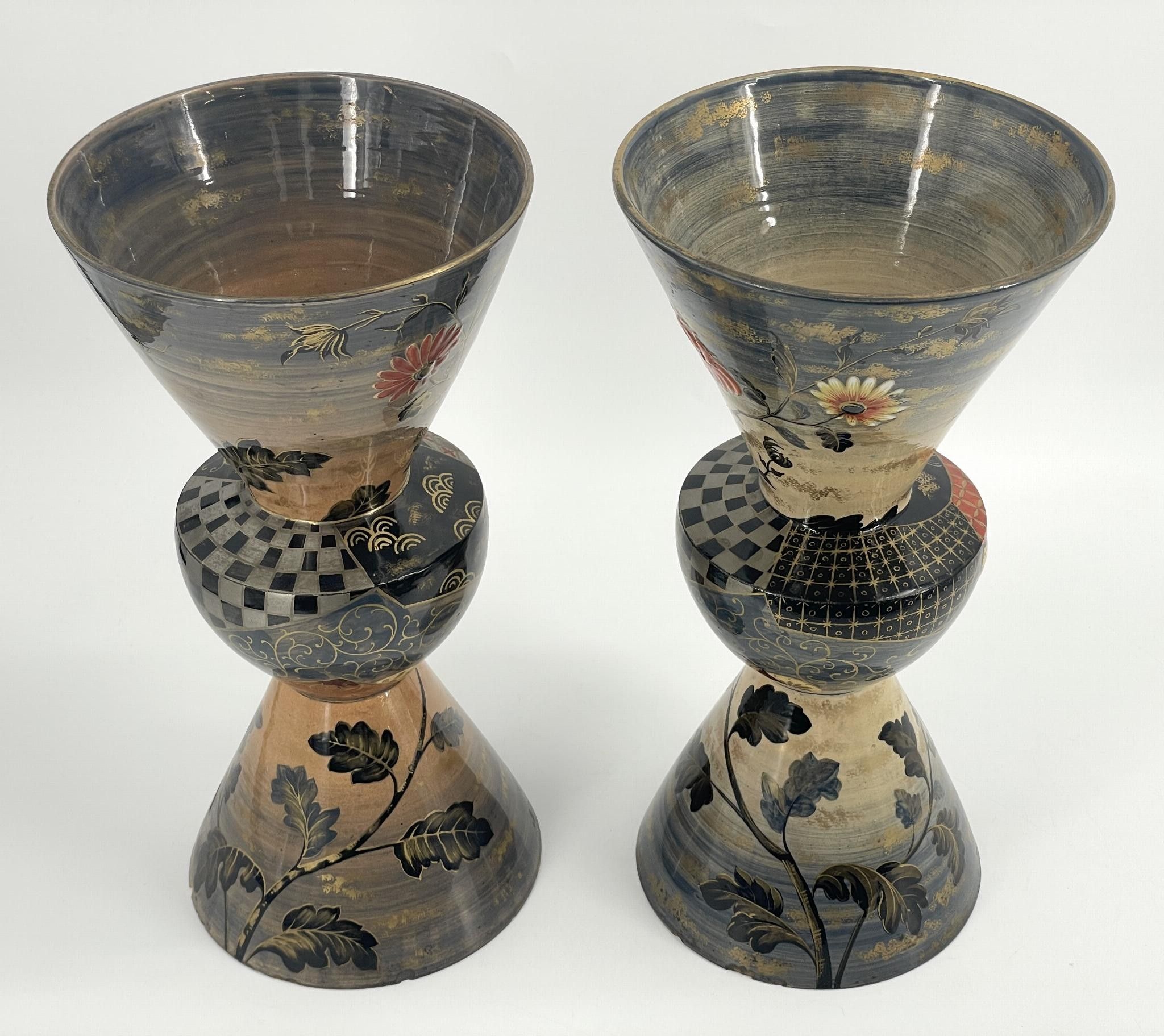 Pair of vases with truncated cone-shaped bases and necks and baluster centres.