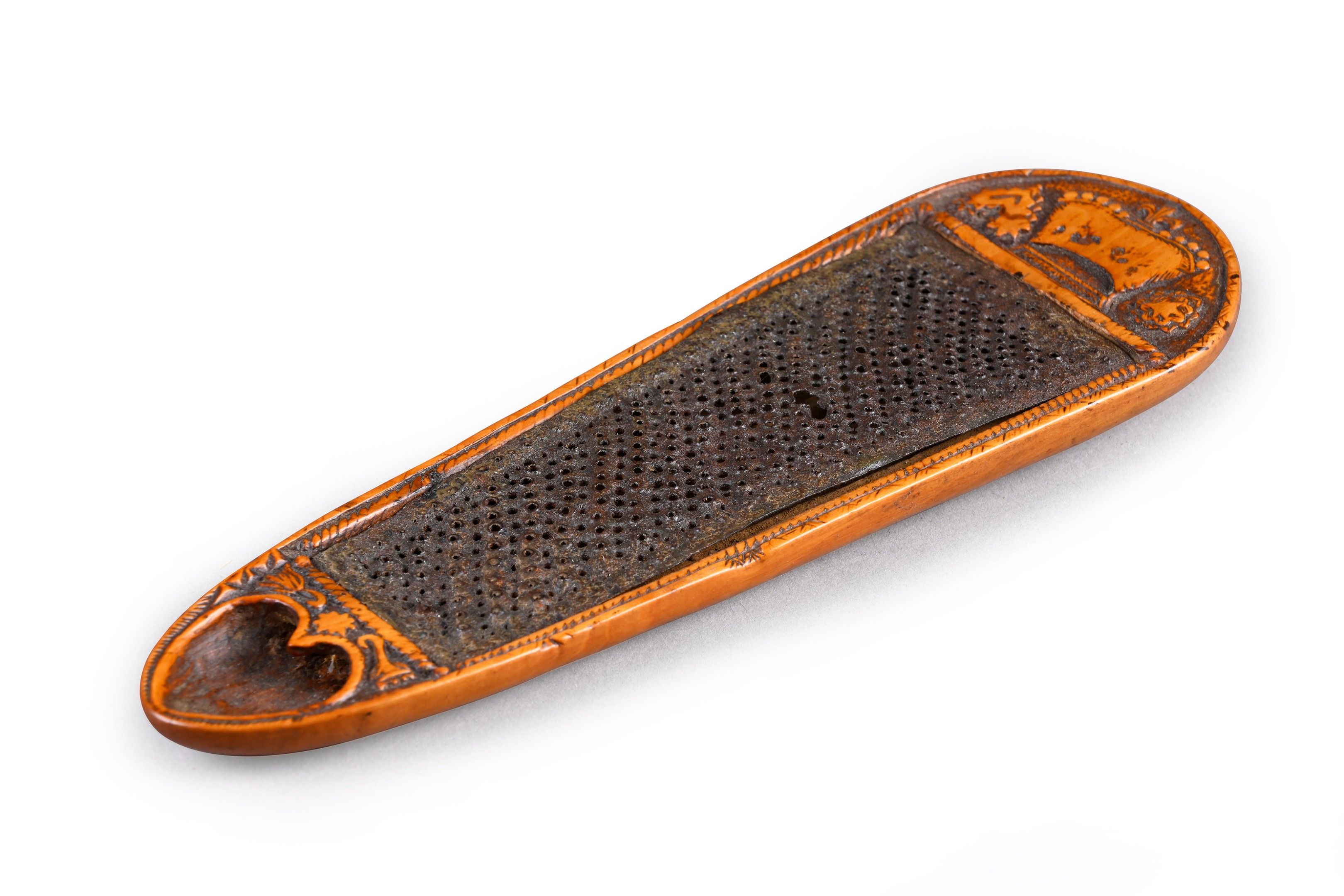 A boxwood tobacco rasp carved on the front with a count's cr…