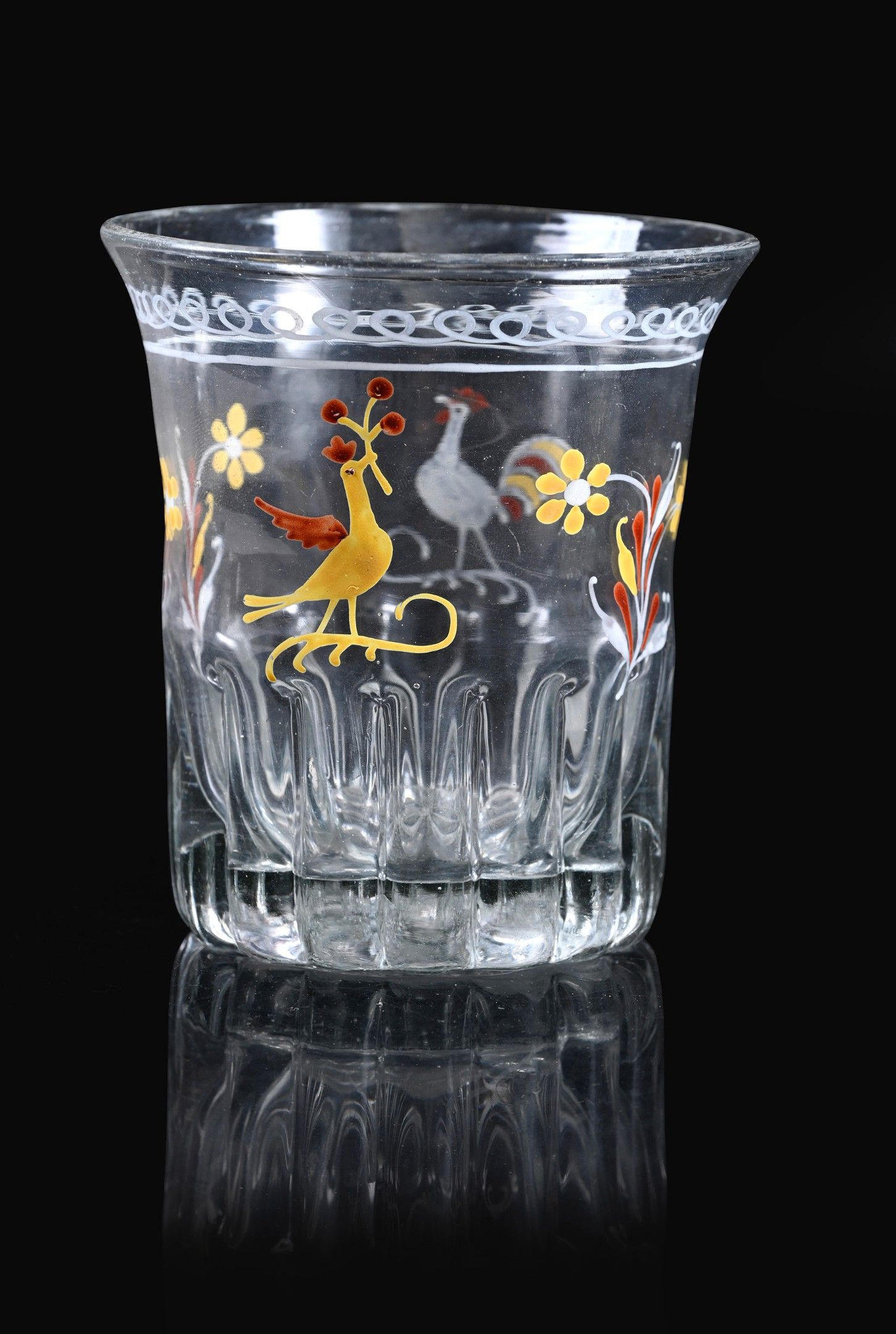 Two Norman goblets decorated with flowers and birds, one wit…
