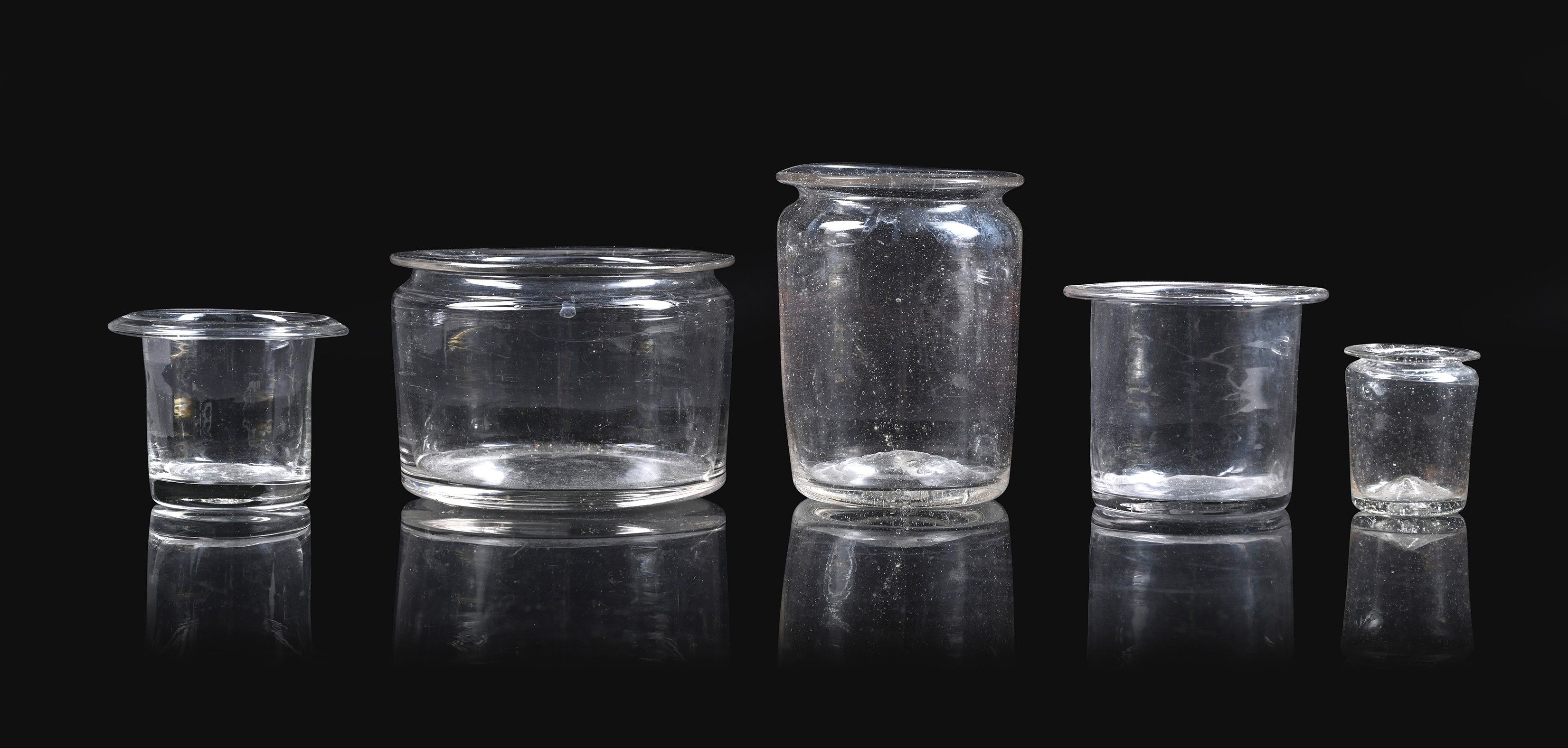 two other jars with wide rims, H.: 6.5 cm and 5.5 cm
