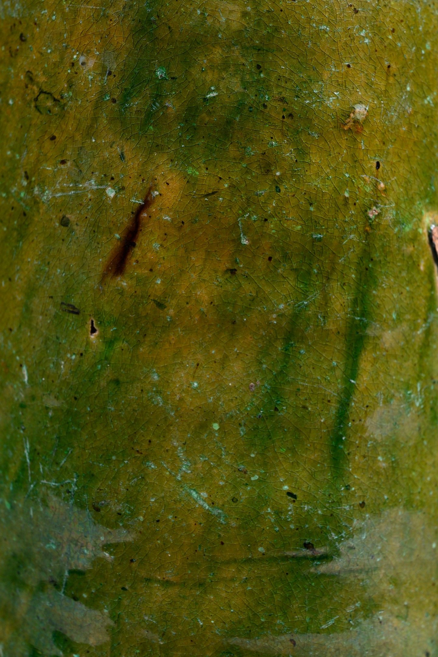 Rare large glazed earthenware bottle. Pink clay with green g…
