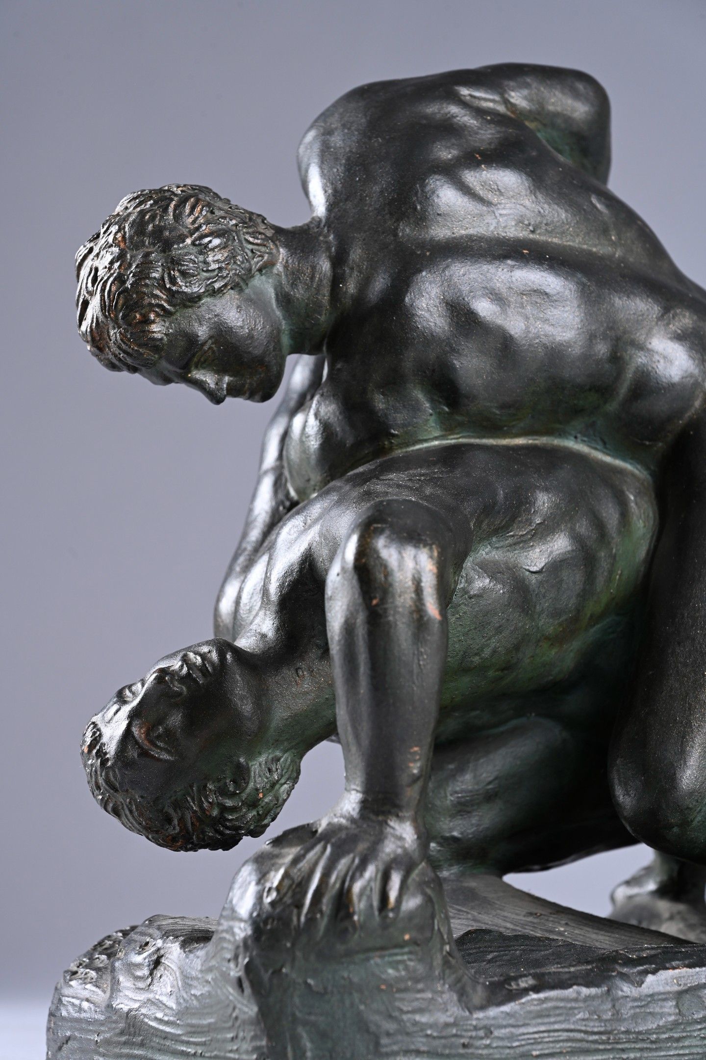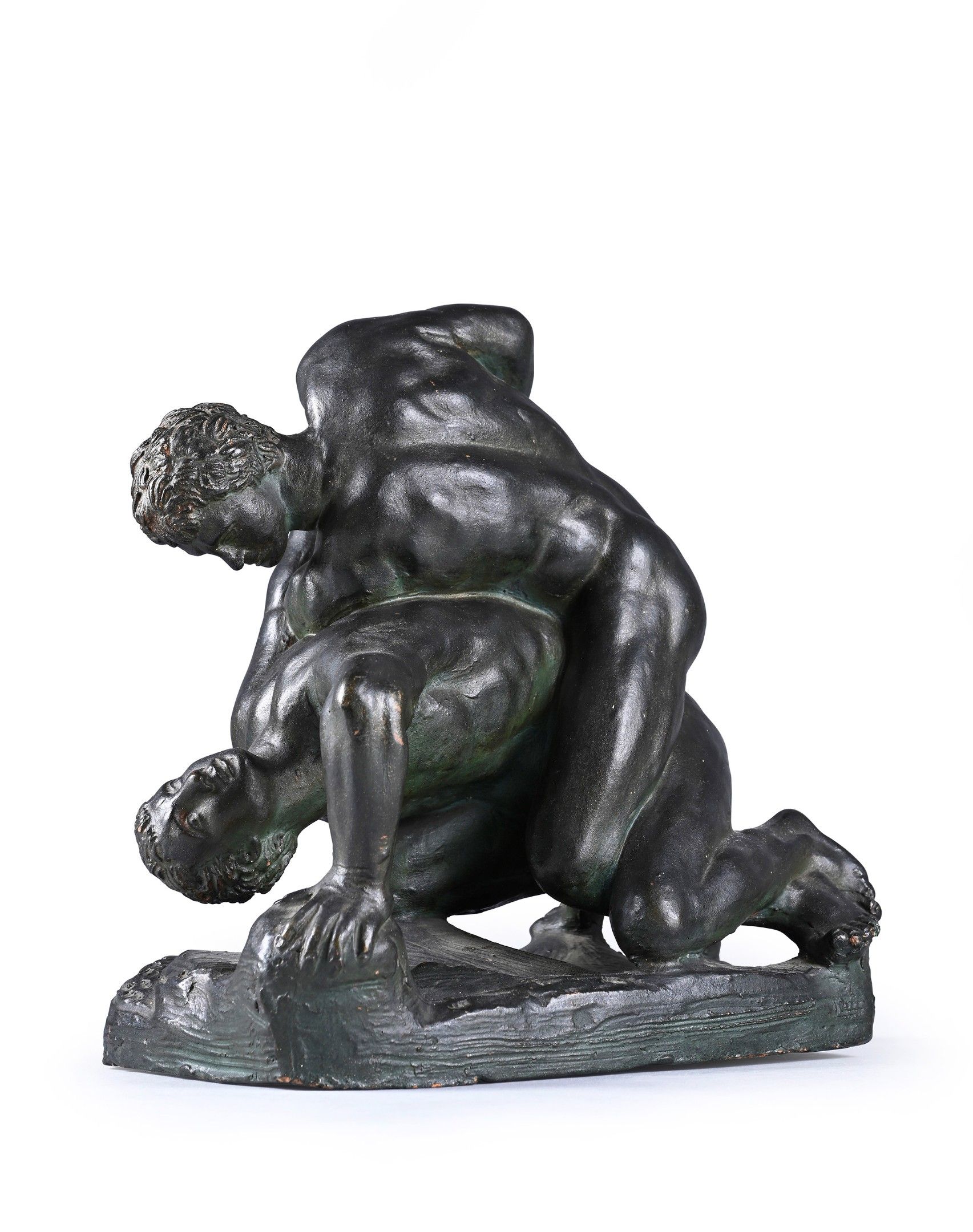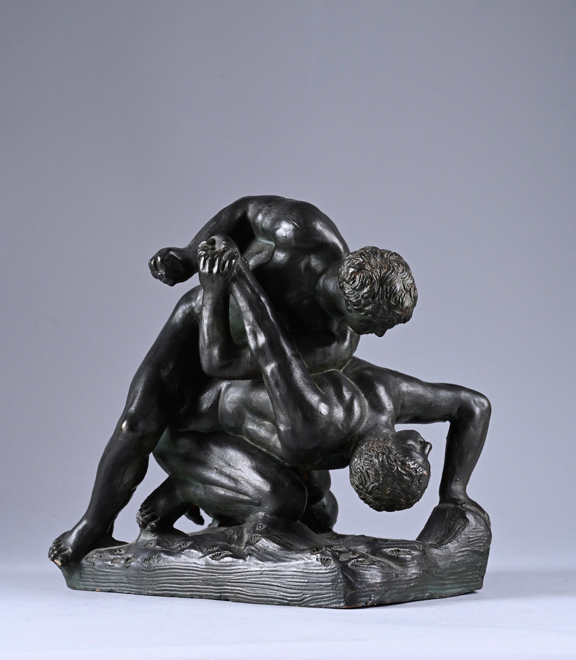 H. 25 cm The antique sculpture The Wrestlers, probably inspired by a Greek bronze now lost, was discovered near Rome in 1583. It is a reminder that pancracking was a Greek combat sport practised at the time of the ancient Olympic Games, which allowed opponents a great deal of freedom in their attacks. This sport was practised naked, as this representation shows.