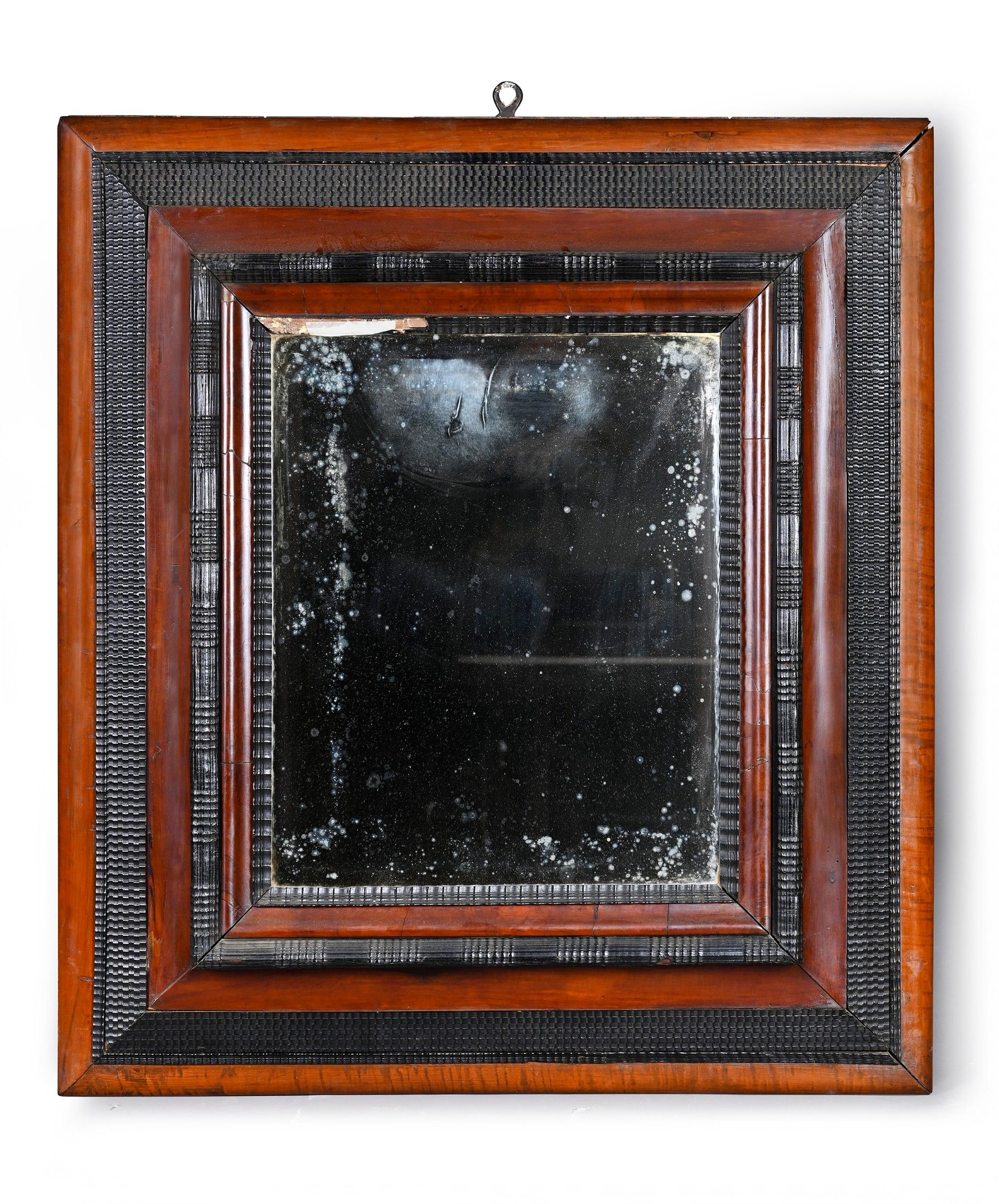 Wood and blackened wood veneered mirror, decorated with tremblé mouldings.