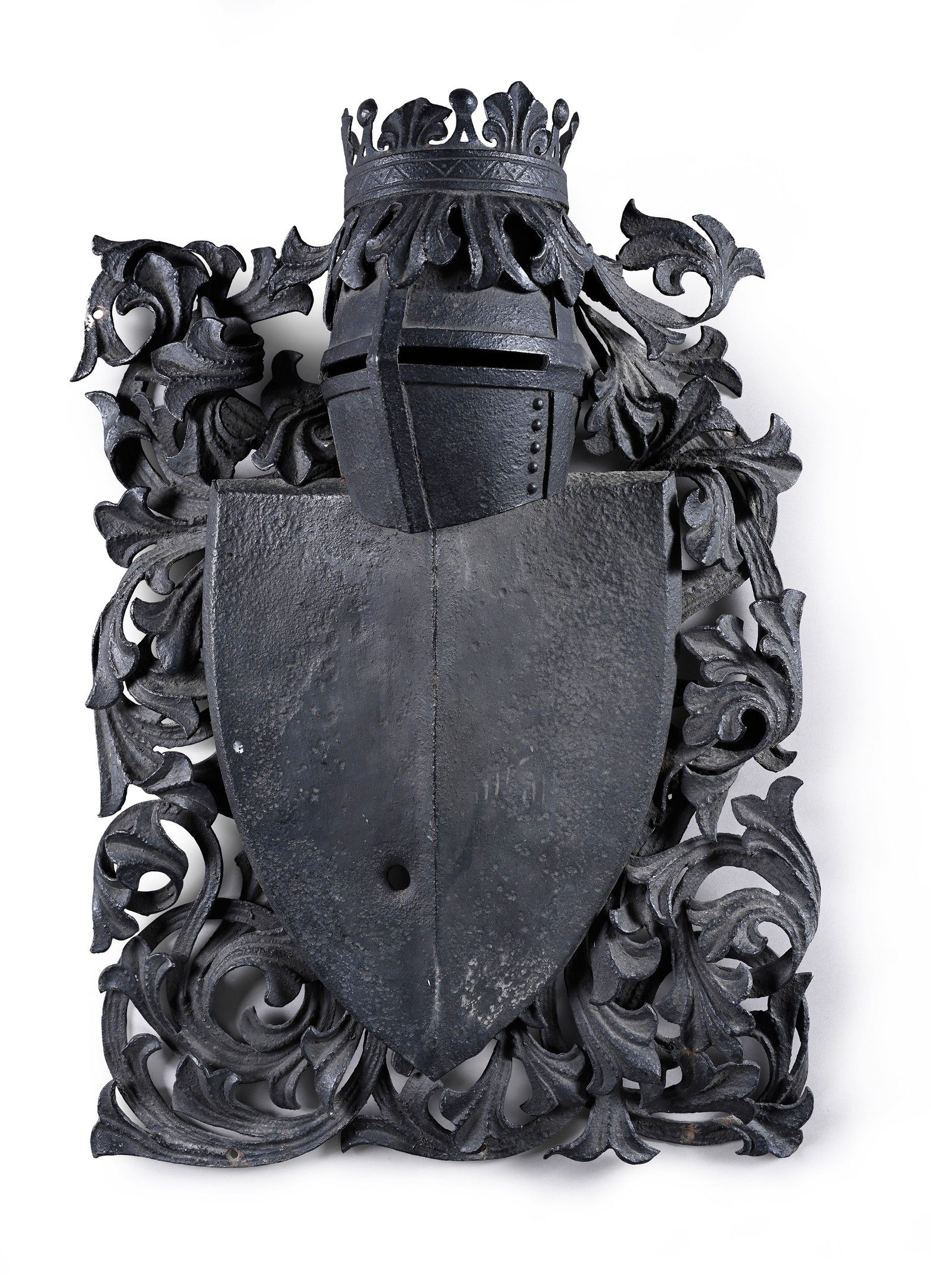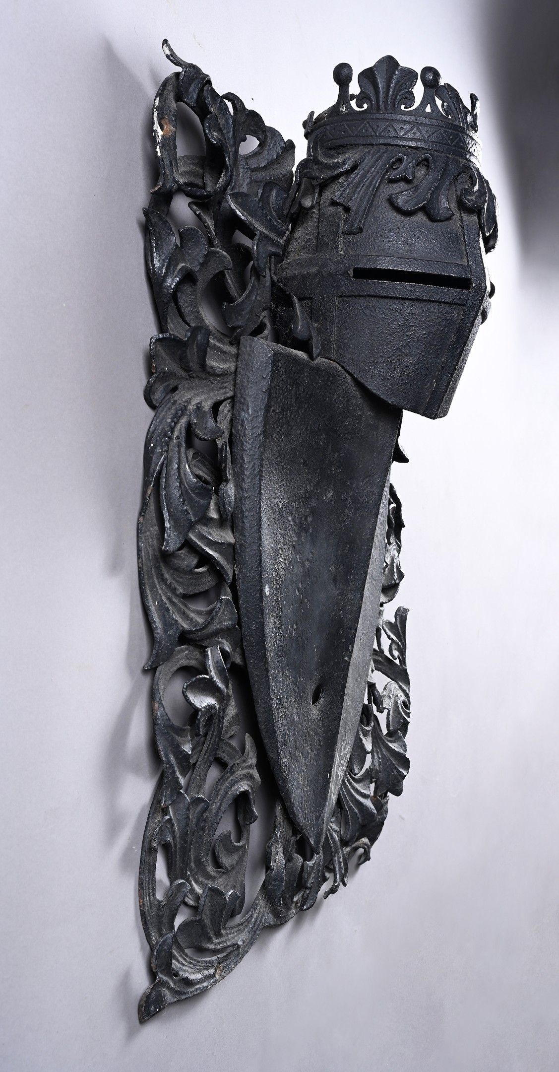 -Wrought iron shield surmounted by a palm tree and surrounde…