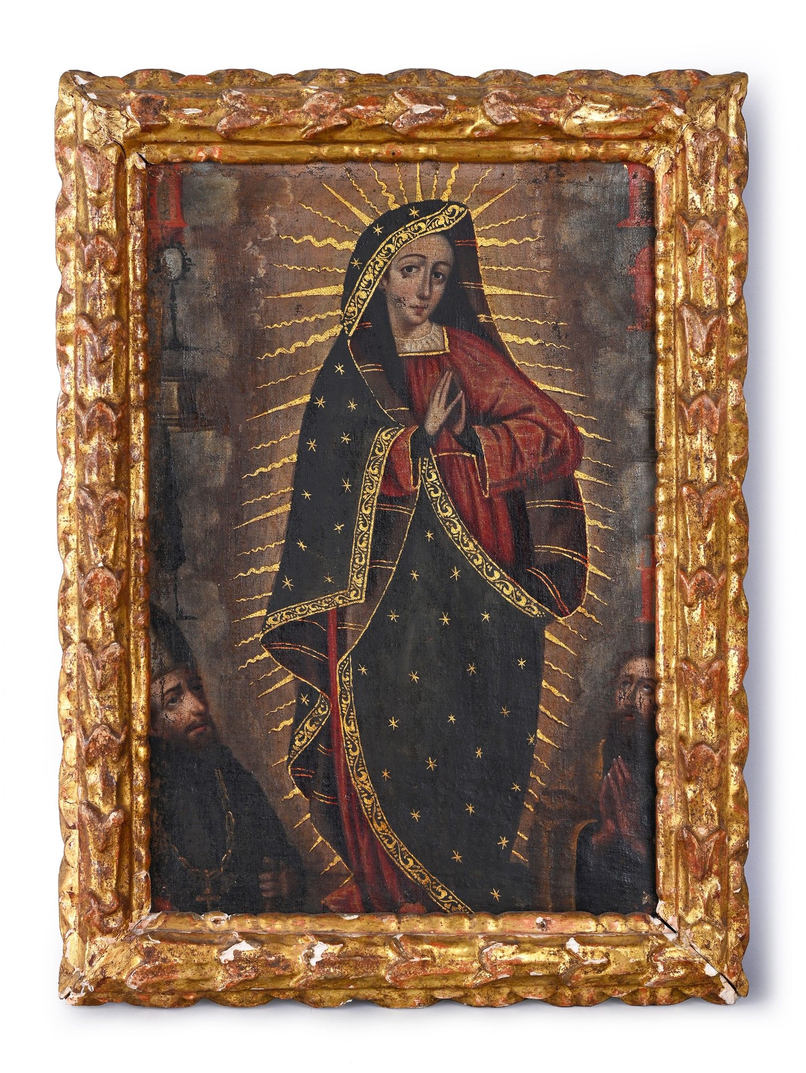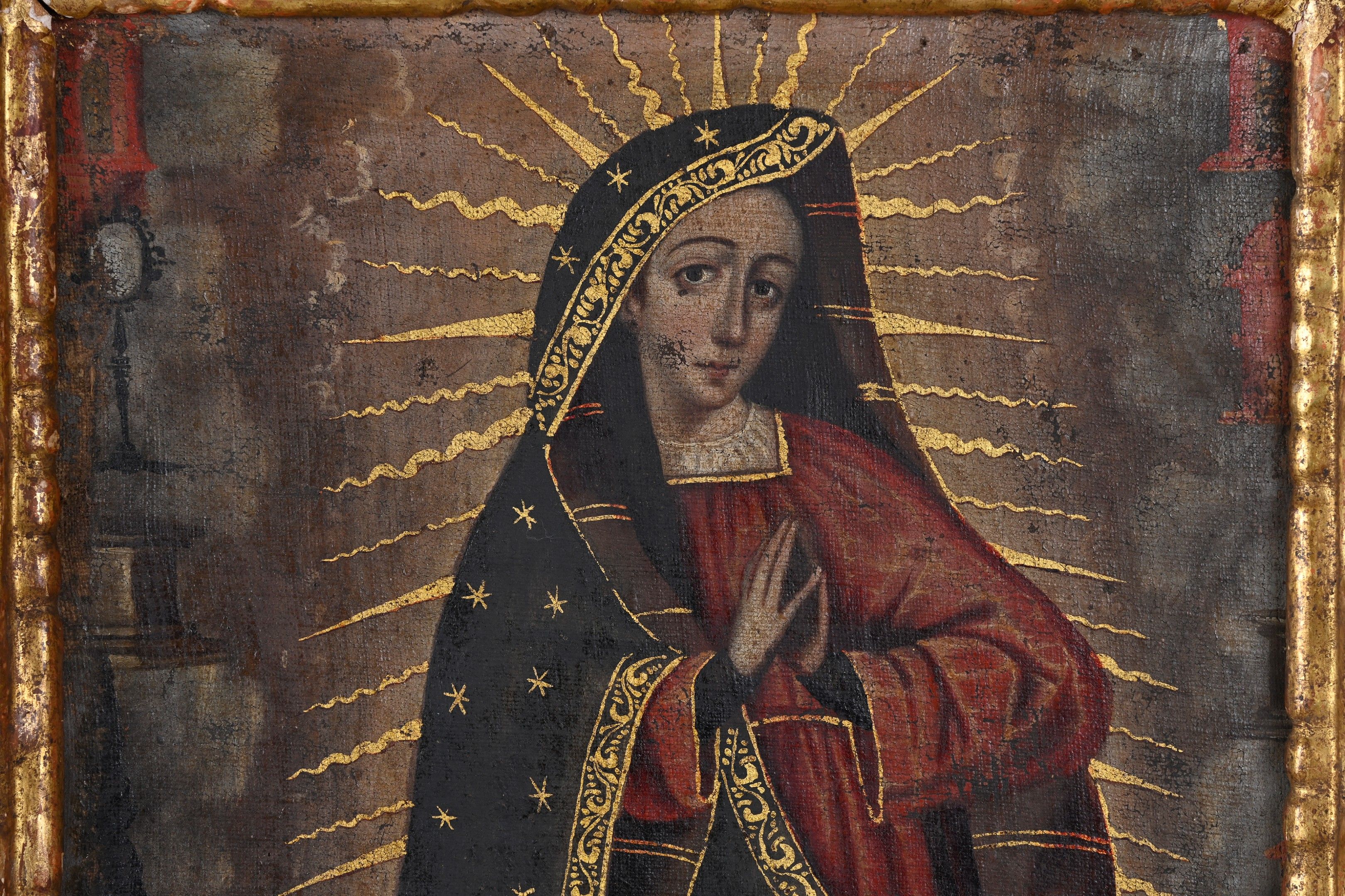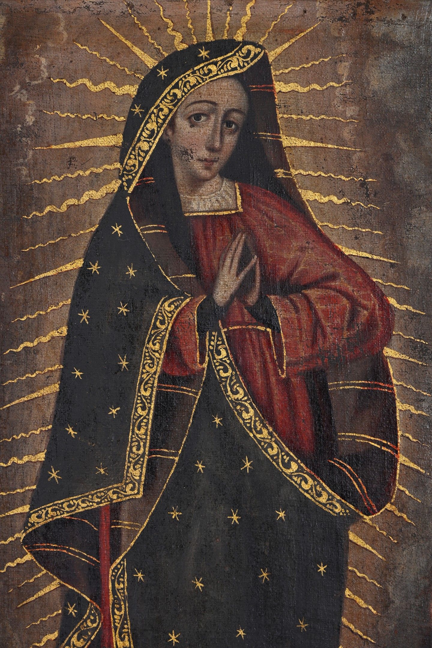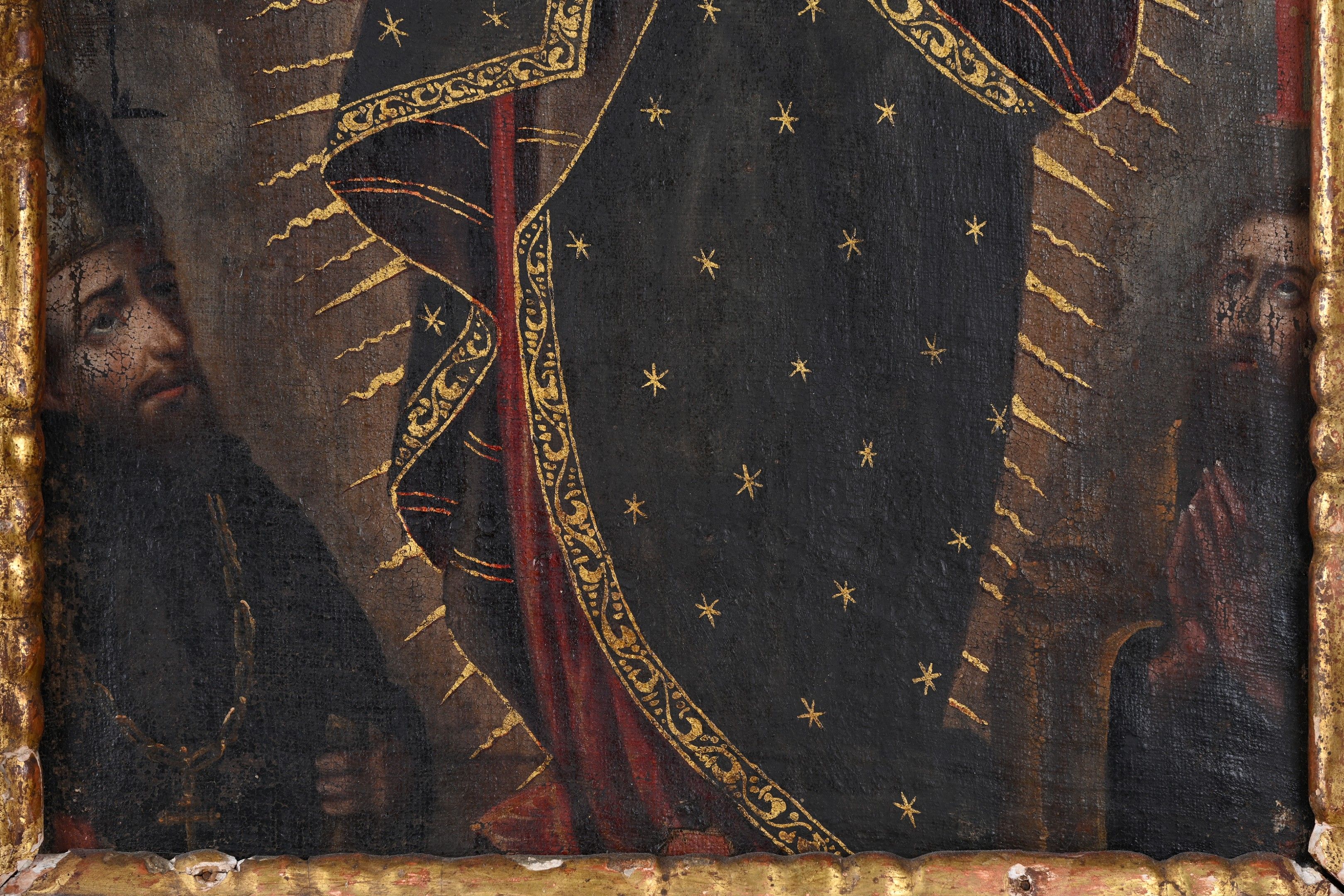 Oil on canvas with gold highlights and brocateado decoration (wear and restoration)