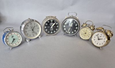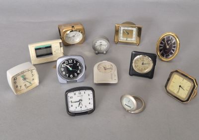 Modern or vintage models include designer clocks from the 1950s to 1980s, made from chromed metal, moulded plastic, glass or brass, sometimes associated with designers or publishers such as Blessing, Vedette, Odo or Kienzle.