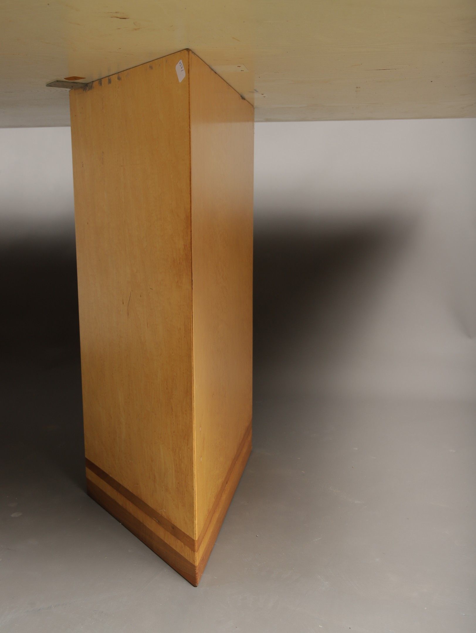 Maple veneered DINING TABLE, top inlaid with diagonal sticks…