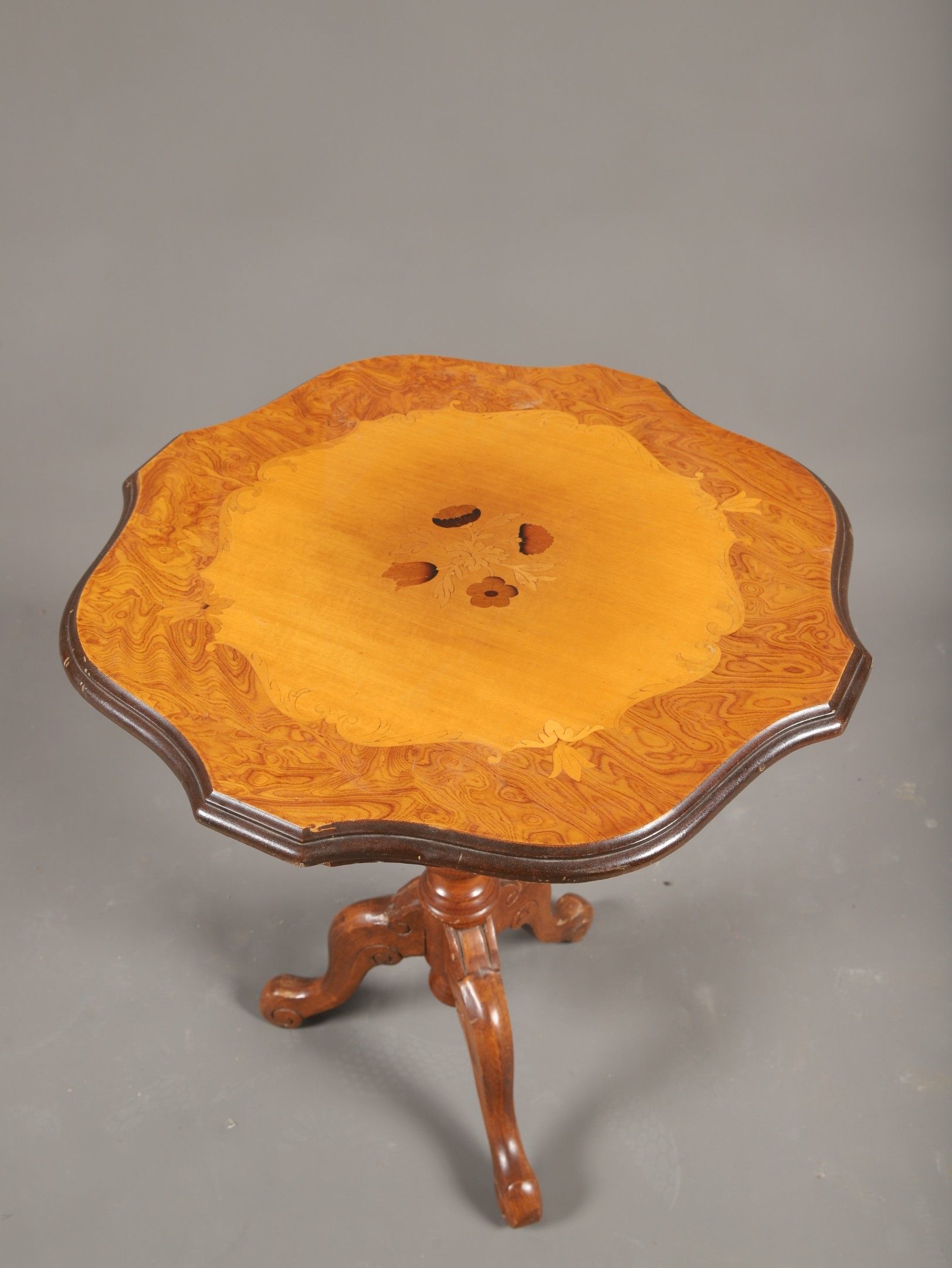 Napoleon III style GUERIDON with flower inlaid top. Height 62 cm
