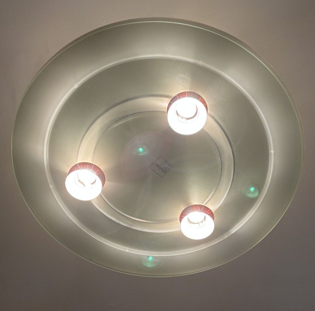 DESIGN. SUSPENSION in frosted glass with three lights editor…